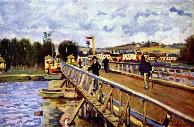 Artist: Alfred Sisley - Title: Bridge in Argenteuil - Medium: Fine Art Reproduction Giclee on Canvas - Image Size: Approximately 13 inches x 20 inches - Unframed on Unstretched Canvas - Biography: Alfred Sisley was an Impressionist landscape painter who was born and spent most of his life in France, but retained British citizenship. He was the most consistent of the Impressionists in his dedication to painting landscape en plein air.
