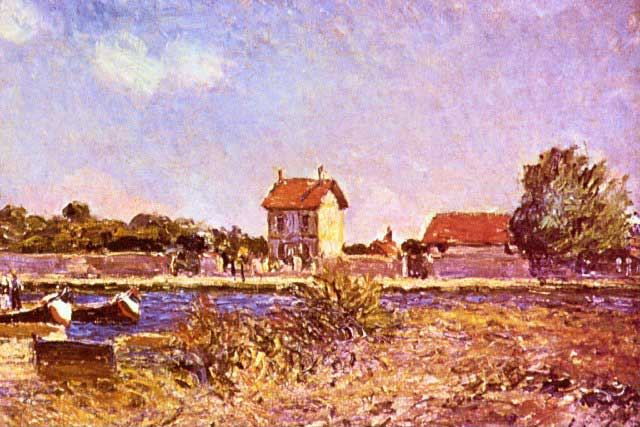 Artist: Alfred Sisley - Title: Sainte-Mammes - Medium: Fine Art Reproduction Giclee on Canvas - Image Size: Approximately 13.25 inches x 20 inches - Unframed on Unstretched Canvas - Biography: Alfred Sisley was an Impressionist landscape painter who was born and spent most of his life in France, but retained British citizenship. He was the most consistent of the Impressionists in his dedication to painting landscape en plein air.