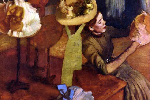 Artist: Alfred Sisley - Title: The Millinery Shop - Medium: Fine Art Reproduction Giclee on Canvas - Image Size: Approximately 13.25 inches x 20 inches - Unframed on Unstretched Canvas - Biography: Alfred Sisley was an Impressionist landscape painter who was born and spent most of his life in France, but retained British citizenship. He was the most consistent of the Impressionists in his dedication to painting landscape en plein air.