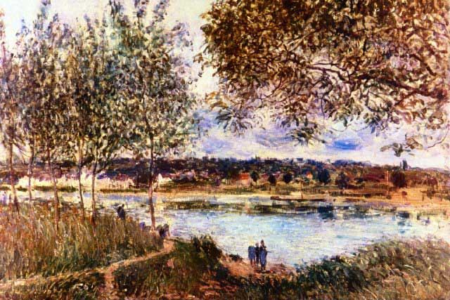 Artist: Alfred Sisley - Title: The Path to the Old Ferry, 1880 - Medium: Fine Art Reproduction Giclee on Canvas - Image Size: Approximately 13.25 inches x 20 inches - Unframed on Unstretched Canvas - Biography: Alfred Sisley was an Impressionist landscape painter who was born and spent most of his life in France, but retained British citizenship. He was the most consistent of the Impressionists in his dedication to painting landscape en plein air.