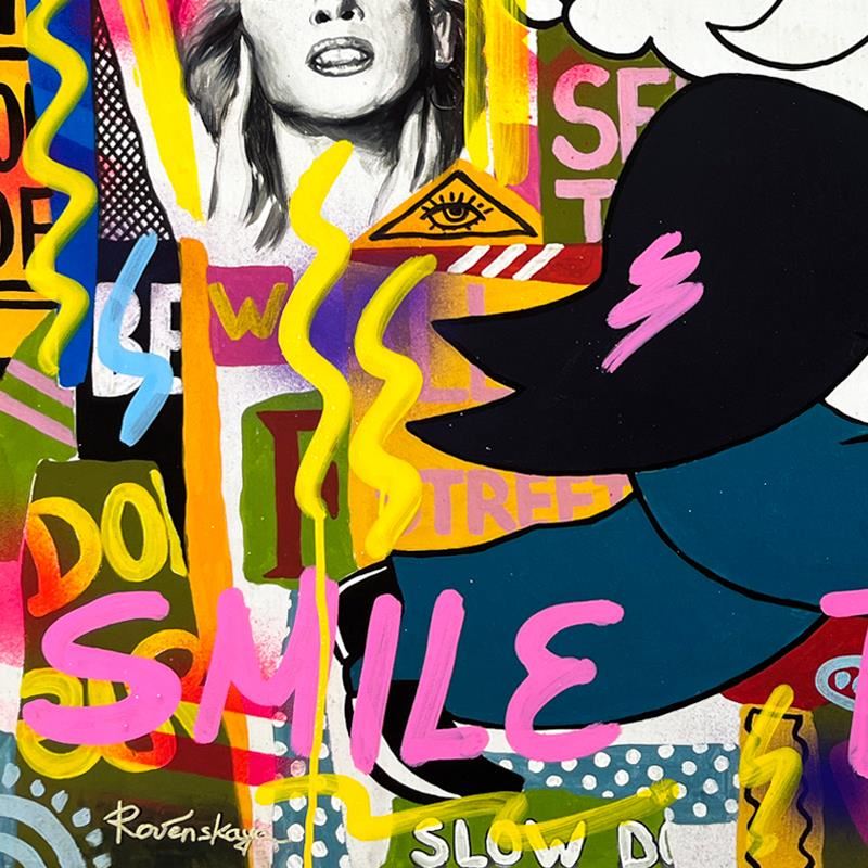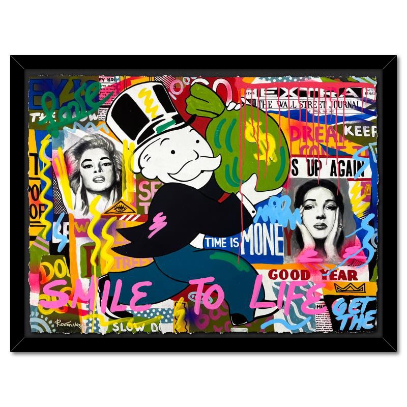 "All the Way Home" is a one-of-a-kind mixed media on deckle edge paper by Nastya Rovenskaya; hand signed by the artist. This piece comes custom framed and includes letter of authenticity. Measures approximately 36.5" x 46" (framed), 30.5" x 40" (image).