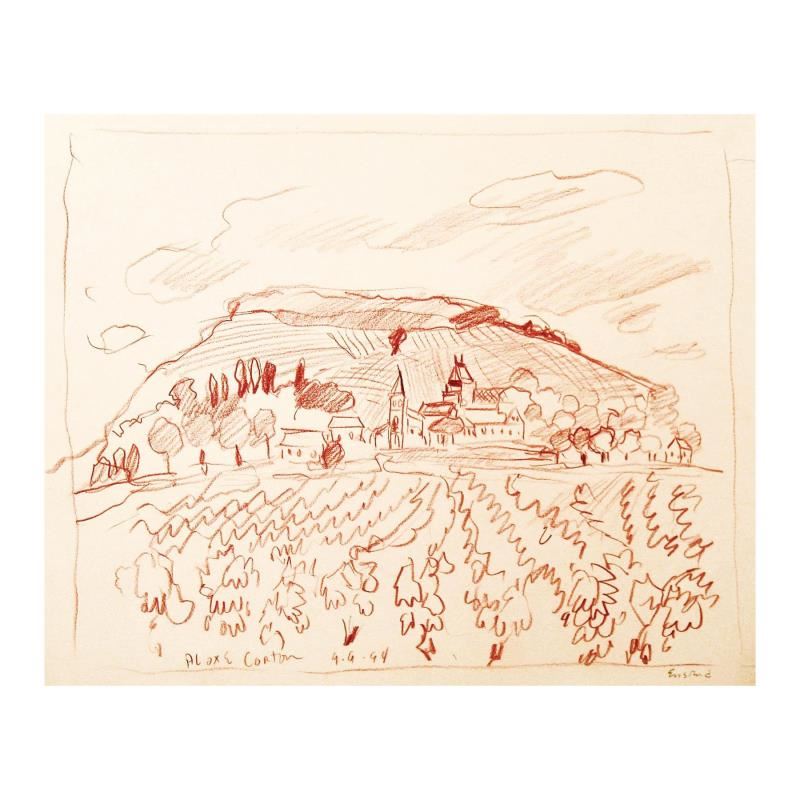 "Aloxe-Carton, Burgundy" is an original Pencil on Paper by Wayne Ensrud. The piece is hand signed by the artist and comes with a Certificate of Authenticity. Measures approximately 13" x 16".