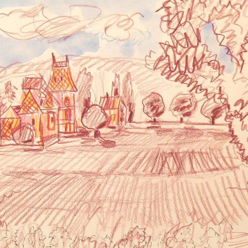 "Aloxe-Carton, Burgundy" is an original Mixed Media on Paper by Wayne Ensrud. The piece is hand signed by the artist and comes with a Certificate of Authenticity. Measures approximately 13" x 16".