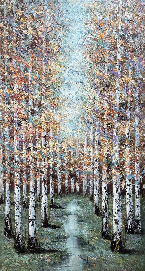 A stunning landscape in the classic impressionist style, with heavy impasto, by world renowned artist Inam. 46"x24" original on canvas, with COA