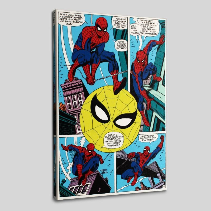 A piece of comic book history, this limited edition print, drawn by Gil Kane, depicts a classic comic strip starring Spider-Man. Eli Katz (April 6, 1926 â€" January 31, 2000) who worked under the name Gil Kane and in one instance Scott Edward, was a comic book artist whose career spanned the 1940s to 1990s and every major comics company and character. Kane co-created the modern-day versions of the superheroes Green Lantern and the Atom for DC Comics, and co-created Iron Fist with Roy Thomas for Marvel Comics. He was also involved in such major story lines as that of The Amazing Spider-Man. "Amazing Spider-Man #90" is a limited edition numbered giclee on stretched canvas by Gil Kane presented by Marvel Comics. This piece is gallery wrapped and ready to hang. Includes Certificate of Authenticity! Measure approx. 18" x 27" (image); 1.5 " (depth).
