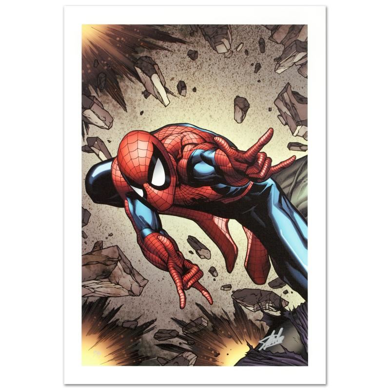 A piece of comic book history, this limited edition, from original art by Steve McNiven, depicts the classic character Spider-Man. Known for being the penciller of the Marvel mini-series "Civil War," Steve McNiven has also contributed art to Spider-Man and Wolverine, among others. "Amazing Spider-Man Annual #38" is a limited edition giclee on canvas by Steve McNiven presented by Marvel Comics, numbered and hand signed by the great Stan Lee! Includes Certificate of Authenticity! Measures approx. 18" x 27" (image).