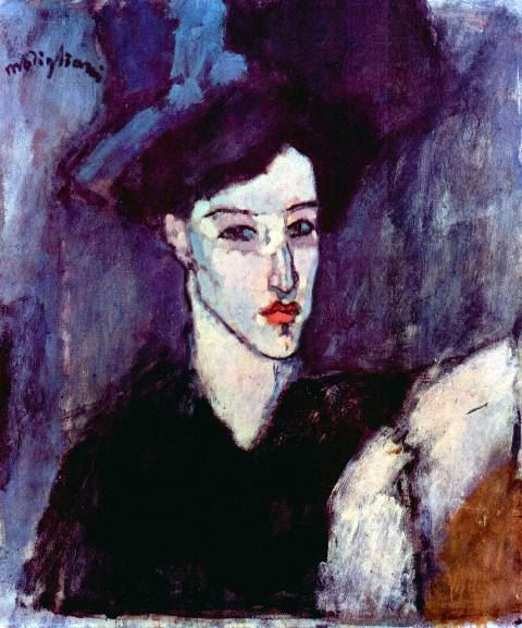 Artist : Amedeo Modigliani - Title: The Jewess - Medium: Fine Art Reproduction Giclee on Canvas - Image Size: Approximately 20 inches x 16.5 inches - Unframed on Unstretched Canvas - Biography: Amedeo Clemente Modigliani was an Italian painter and sculptor who worked mainly in France. He is known for portraits and nudes in a modern style characterized by a surreal elongation of faces, necks, and figures that were not received well during his lifetime, but later became much sought-after.