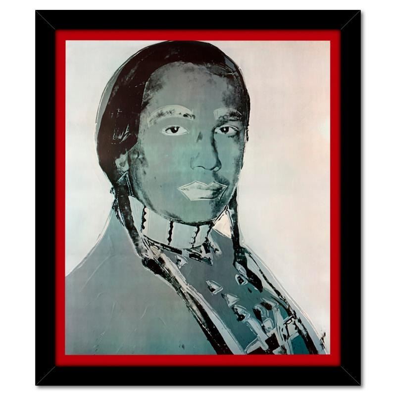 "The American Indian Series (Red 1976, Blue 1977 & Black 1976)" is a 3 piece set of vintage lithographs by Andy Warhol (1928-1987) cropped from the Ace Gallery posters. Theses pieces come custom framed. Includes Letter of Authenticity. Each Piece measures approx. 28.5" x 33.5" (frame), 25" x 30" (image). Due to the age of the piece there may be some waviness and/or minor wrinkles on the paper.