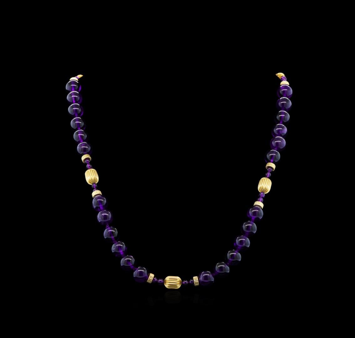 Amethyst Necklace - 14KT Yellow Gold. Total Weight: 71.6 grams.