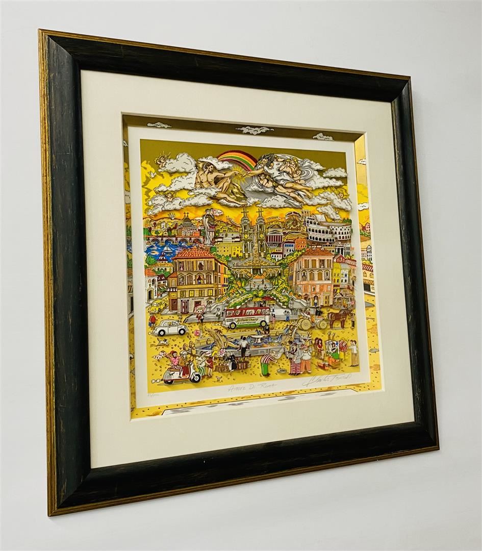 3D Pop Art, 36"x35" Framed Roma Moulding, 9/25 Artist Proof, custom hand painted liner. Signed by Fazzino