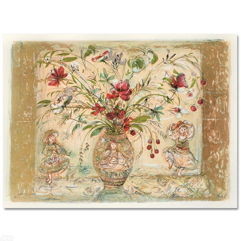 "Amy Rebecca's Floral Fantasy" is a limited edition lithograph on paper, numbered and hand signed by Edna Hibel (1917-2014). Includes Certificate of Authenticity! Measures approx. 30" x 22.5" (border) 27.5" x 20.5" (image).