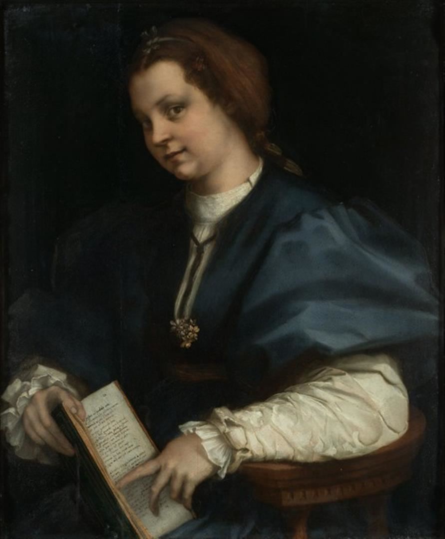Artist: Andrea del Sarto - Title: Lady with a Book - Medium: Fine Art Reproduction Giclee on Canvas - Image Size: Approximately 20 inches x 16.5 inches - Unframed on Unstretched Canvas - Biography: Andrea del Sarto (16 July 1486 - 29 September 1530) was an Italian painter from Florence, whose career flourished during the High Renaissance and early Mannerism. He was known as an outstanding fresco decorator, painter of altar-pieces, portraitist, draughtsman and colorist.Though highly regarded during his lifetime as an artist senza errori ("without errors"), his renown was eclipsed after his death by that of his contemporaries, Leonardo da Vinci, Michelangelo and Raphael.
