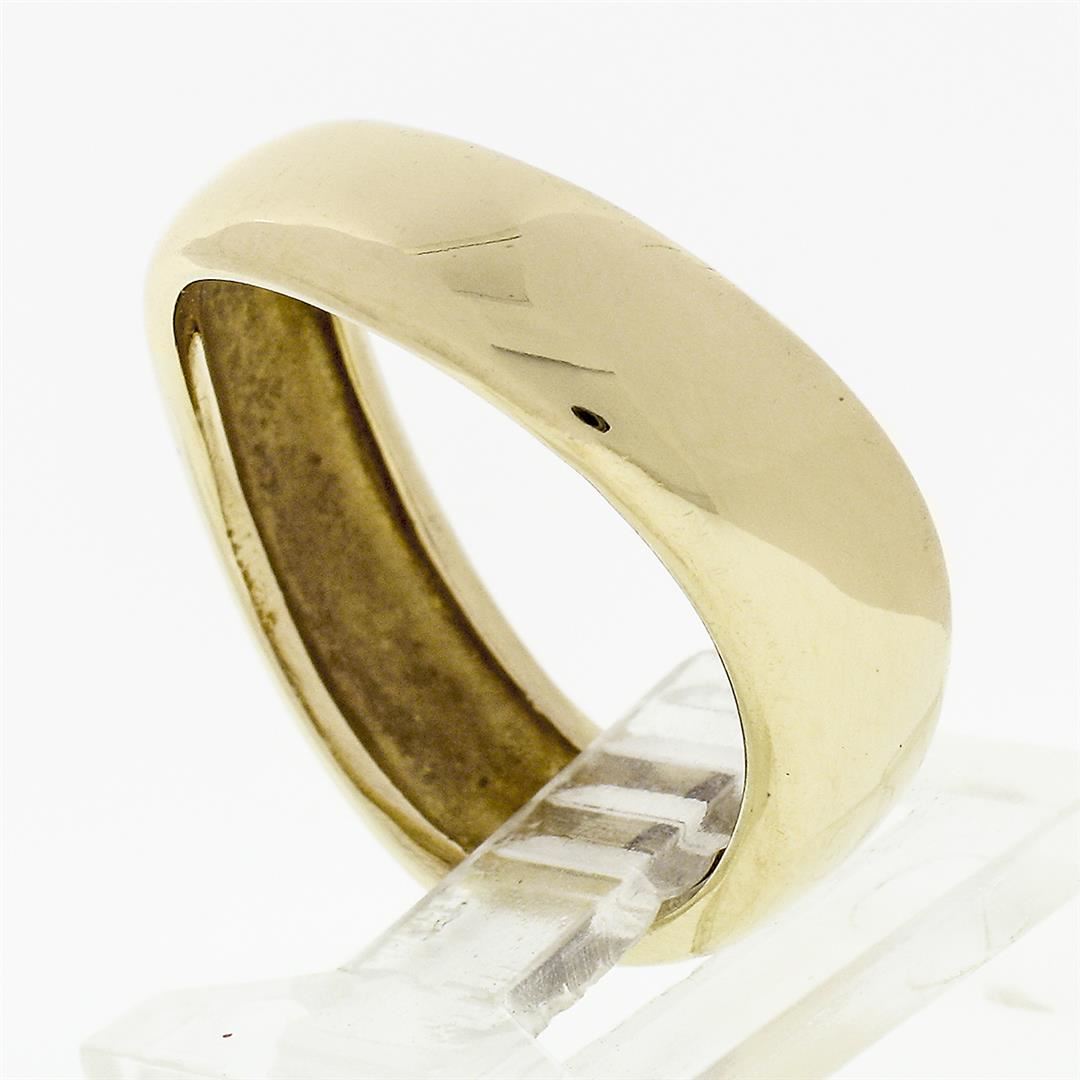 A solid 18k yellow gold wavy domed band ring by Angela Cummings. The ring is size 7.5, weighs a total of 6.40 grams, and measures 6.25mm wide.