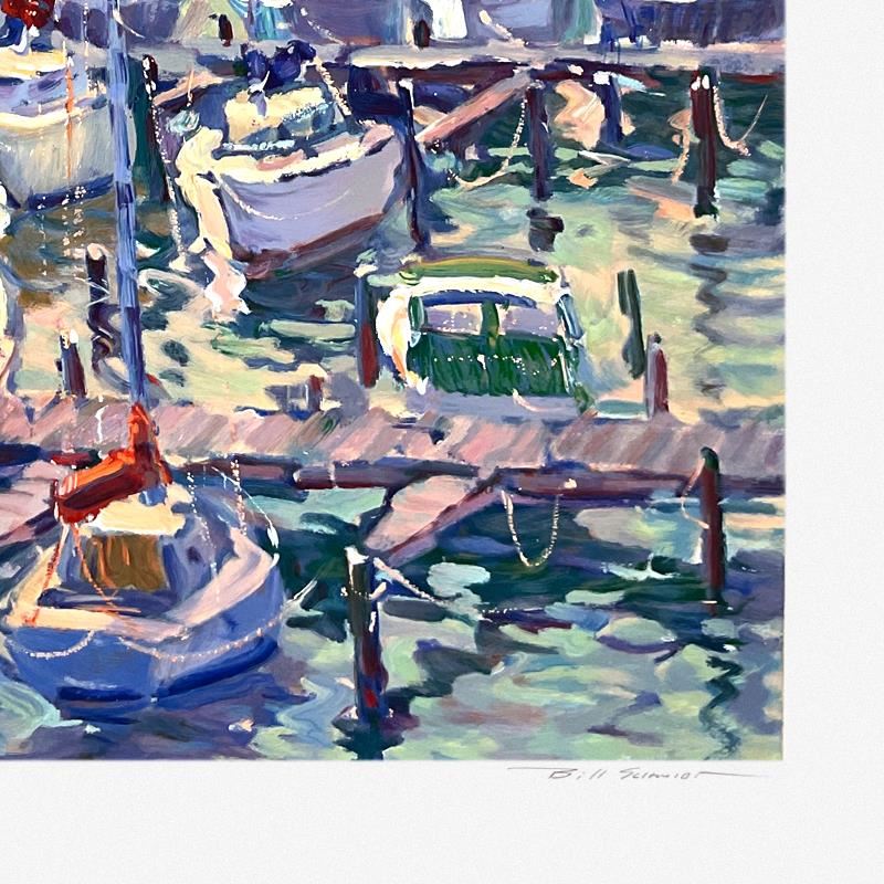 "Annapolis Sunset" is a limited edition printer's proof serigraph on paper by Bill Schmidt, numbered and hand signed by the artist. Includes Letter of Authenticity. Measures approx. 27.5" x 33" (border), 22" x 28" (image).