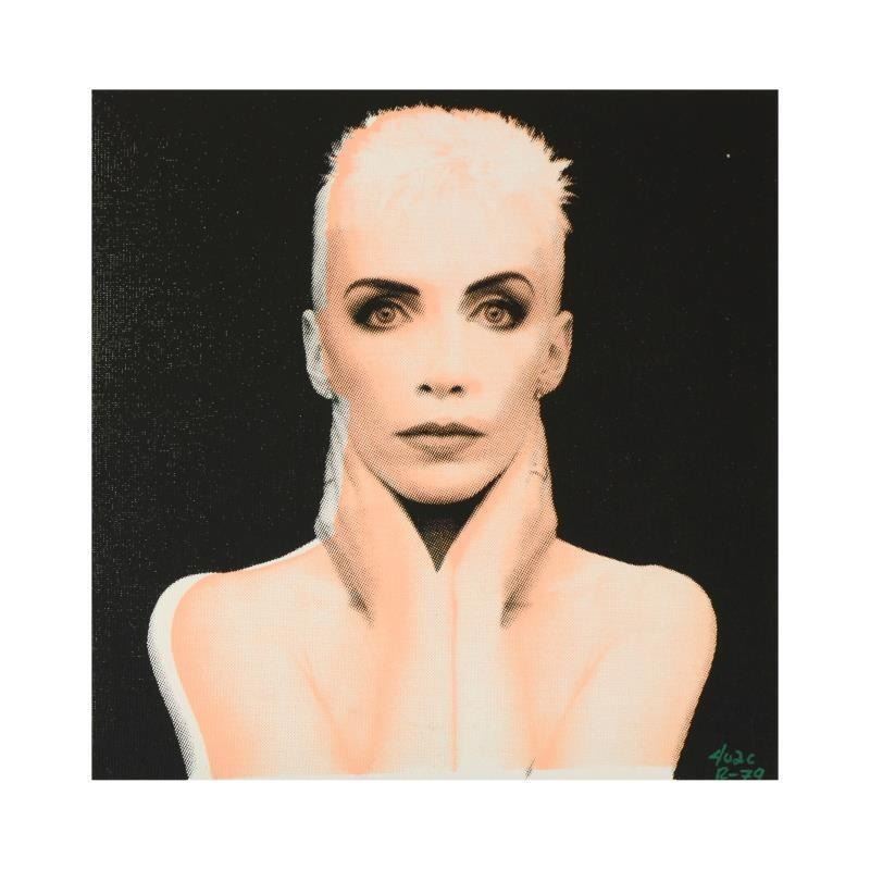 "Annie Lennox" is a one-of-a-kind hand-pulled silkscreen on canvas by Ringo Daniel Funes - protege of Andy Warhol's apprentice, Steve Kaufman. This piece is hand signed by the artist and Includes Certificate of Authenticity. This piece comes from the Andy Warhol Legacy Series. Due to the nature of the canvas these, pieces will need to be mounted for framing. Measures approx. 15" x 15" (image).