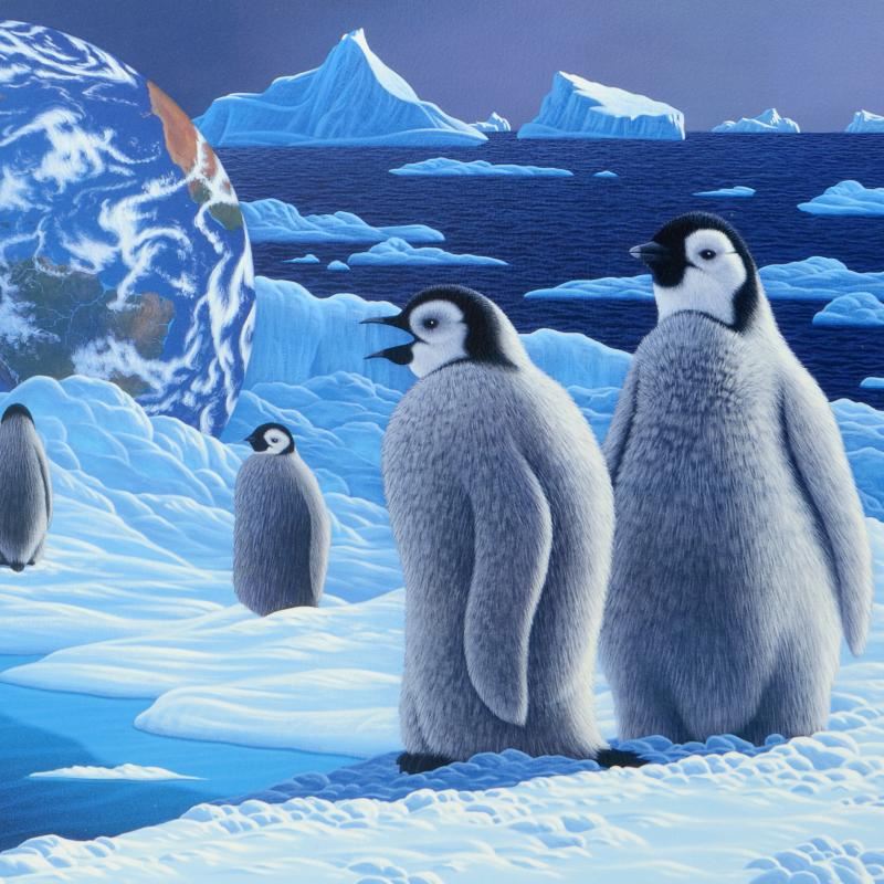 "Antarctica's Children" is a limited edition serigraph on paper by William Schimmel, numbered and hand signed by the artist! Includes Certificate of Authenticity! Measures approx. 35" x 25.5" (with border), 30" x 20" (image).