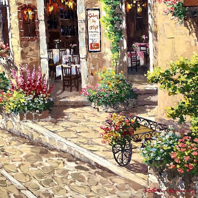 "Antibes" is a hand embellished limited edition printer's proof on stretched canvas by Sam Park, numbered 1/1 and hand signed by the artist. Includes Letter of Authenticity. Measures approx. 40" x 30" (image). There is minor wear on the corners and edges (chipping and/or hairline cracks) that will be concealed when framed.