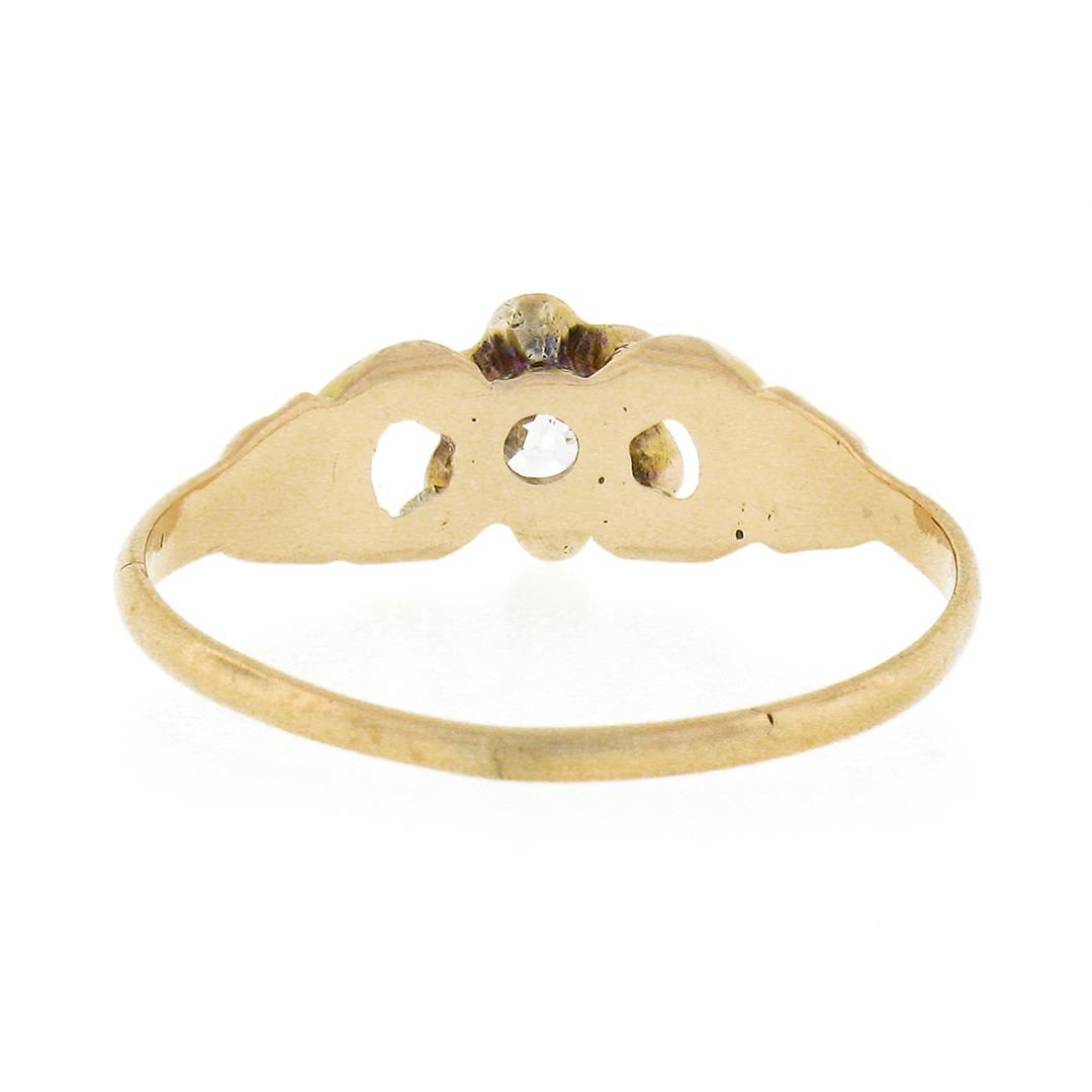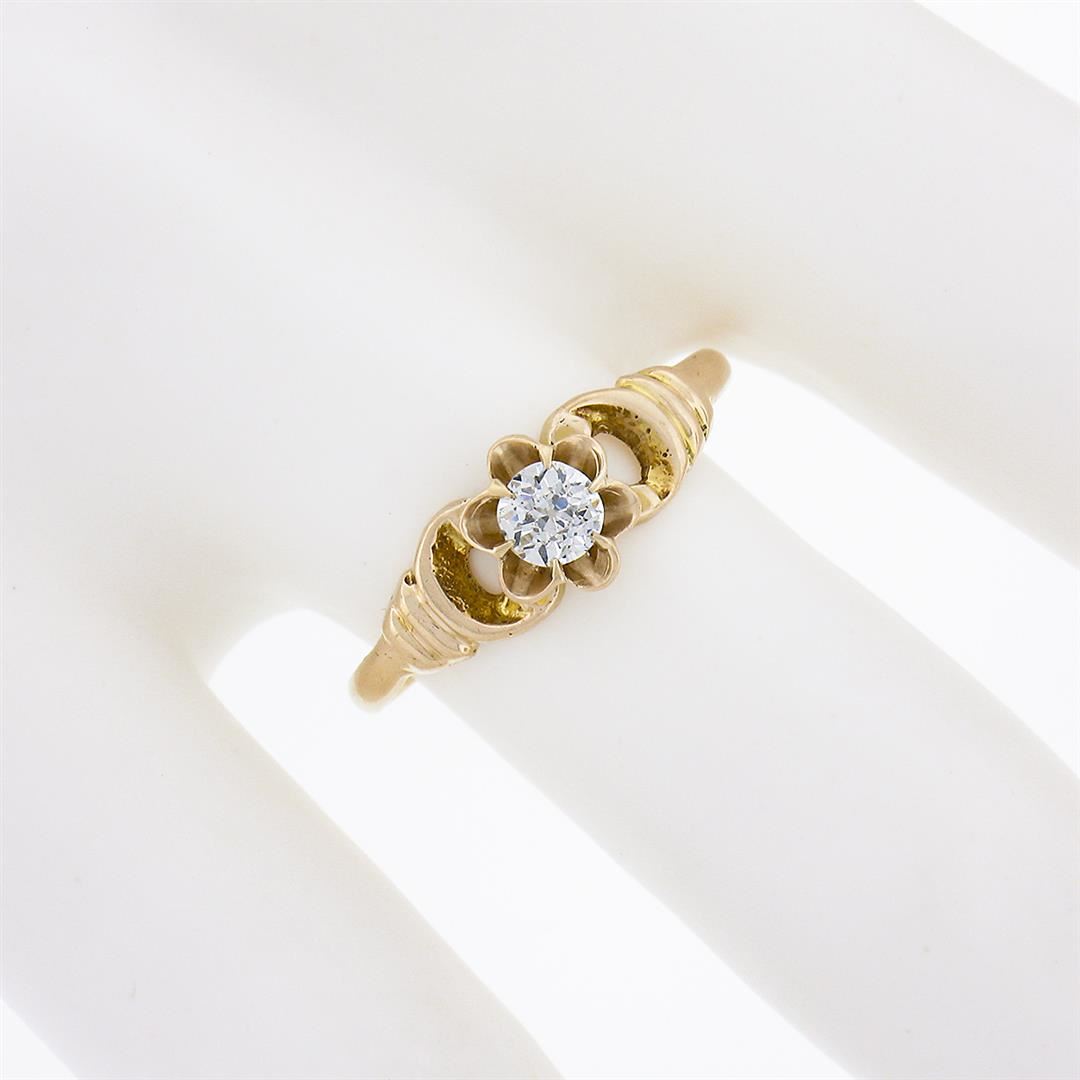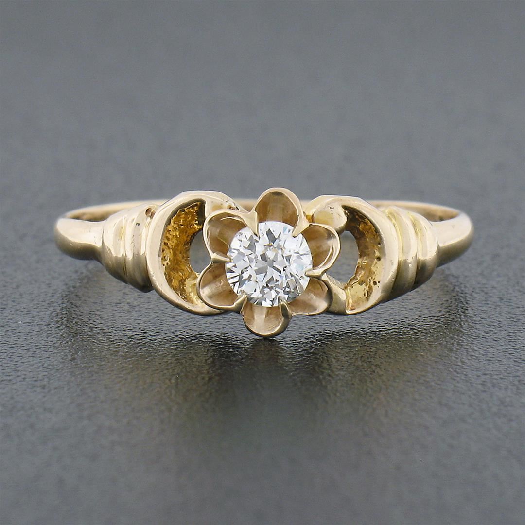 An antique solid 10k yellow gold engagement ring, with 1 old european cut natural diamond (G - VS2 ; 0.25ct). The ring is size 7.5, weighs a total of 1.32 grams, and measures 6.65mm wide.