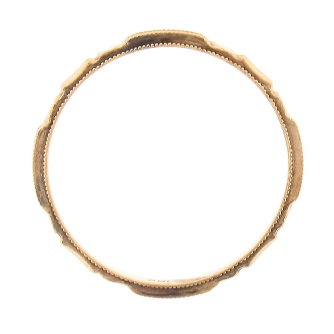 An antique solid 10k yellow gold band ring. The ring is size 6.5, weighs a total of 1.0 grams, and measures 2.1mm wide.