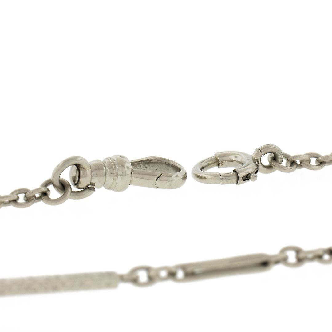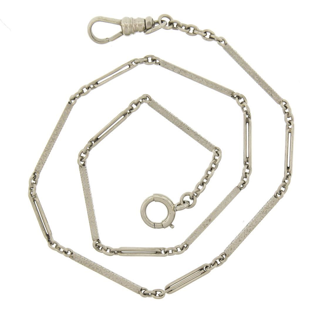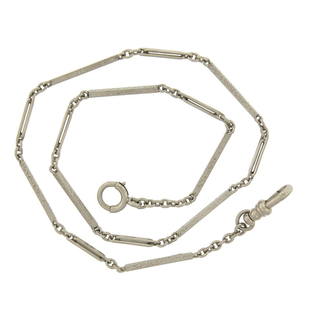 An antique solid 14k white gold pocket wacth chain necklace. It weighs a total of 8.86 grams, measures 2.3mm wide, and measures 14 inches in length.