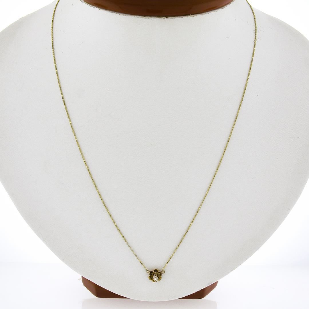 Antique 14k Gold 0.03ctw Buttercup Diamond Solitaire Pendant w/ Adjustable Chain