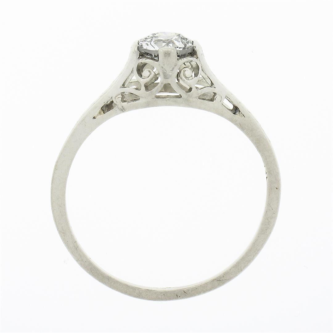 An antique solid 14k white gold engagement ring, with 1 Gia certified old European cut natural diamond (I - I1; 0.54ct). The ring is size 6.75, weighs a total of 1.57 grams, and measures 6.1mm wide. Comes with all original relevant certifications.