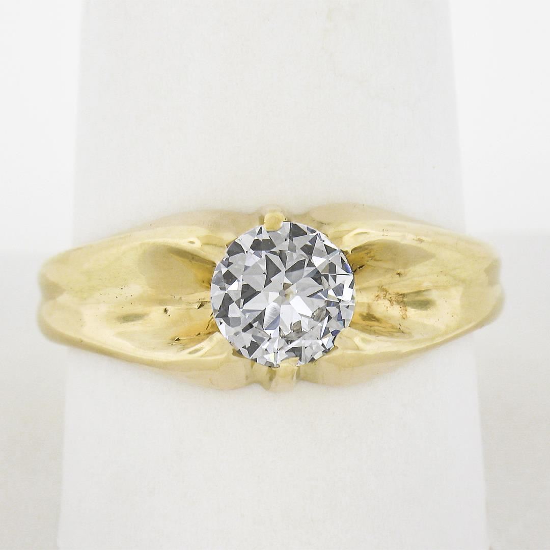 Antique 14k Gold 0.95ct GIA Certified Old Cut Belcher Diamond Engagement Ring