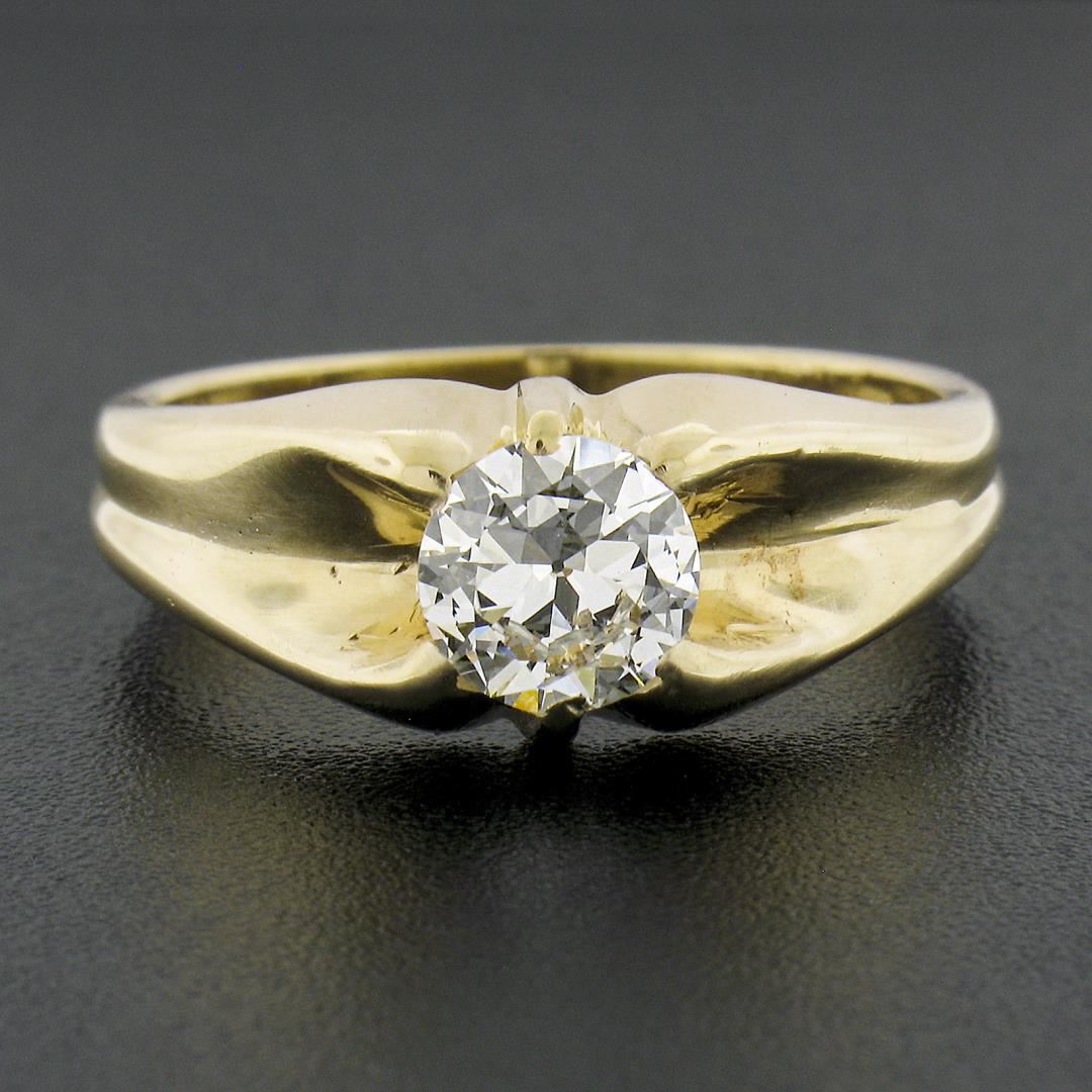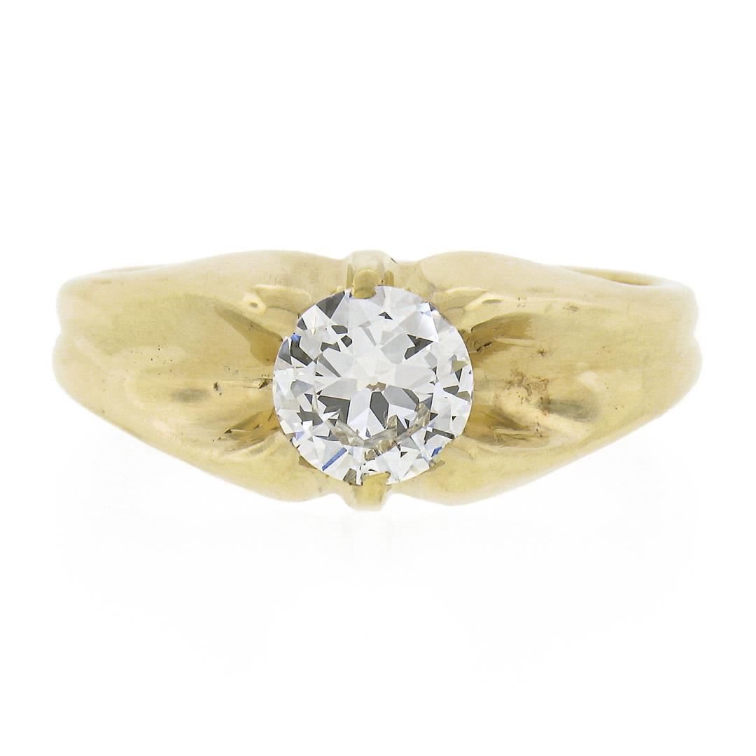 Antique 14k Gold 0.95ct GIA Certified Old Cut Belcher Diamond Engagement Ring