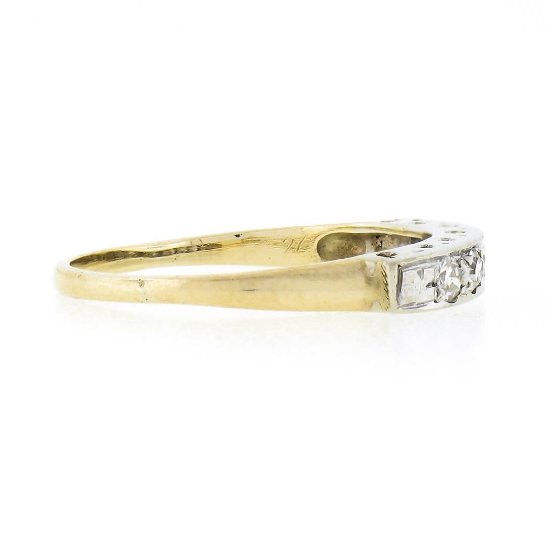 An antique solid 14k yellow and white gold band ring, with 5 old single cut natural diamonds (G/H - VS1/VS2 ; 0.30ctw). The ring is size 8.0, weighs a total of 1.97 grams, and measures 3.20mm wide.
