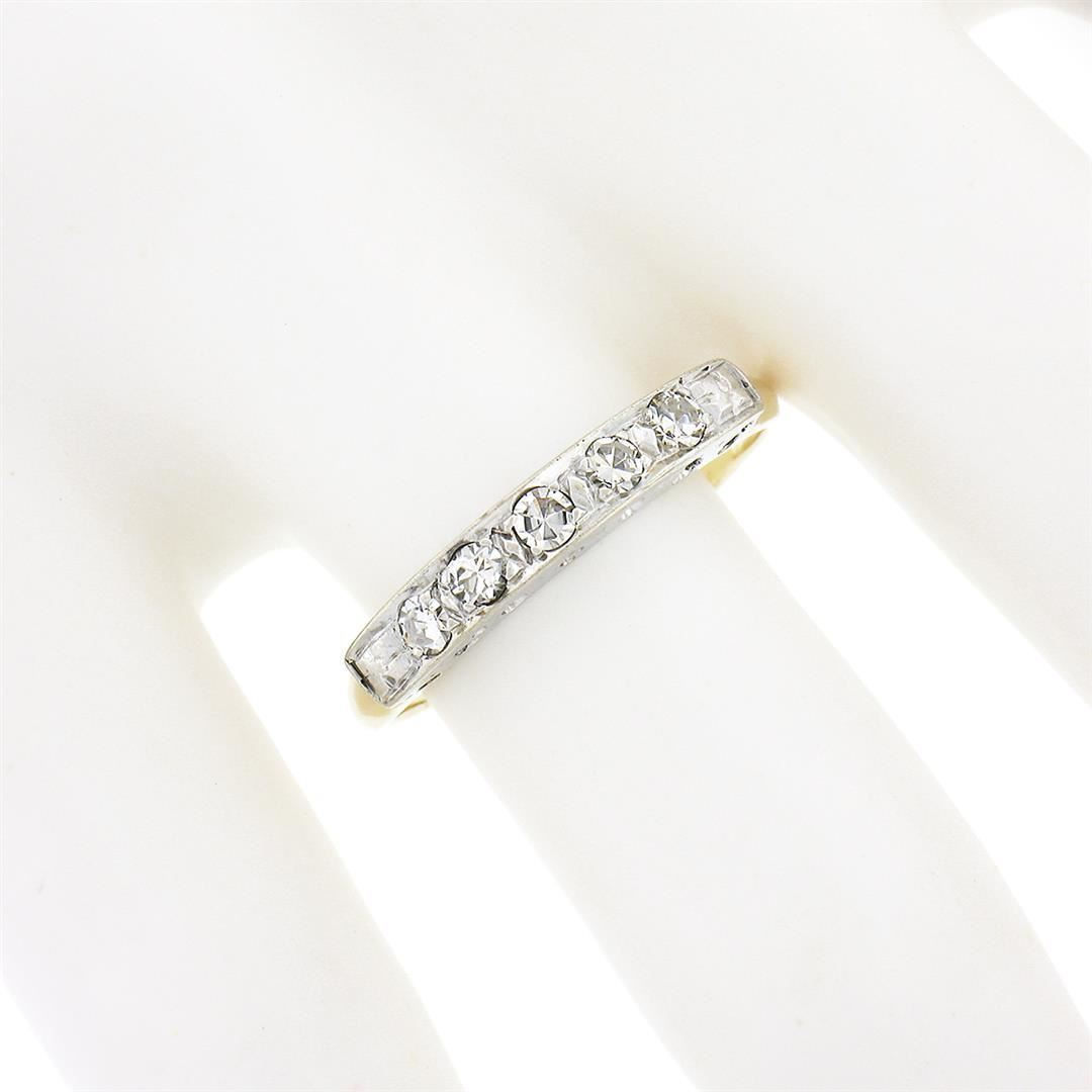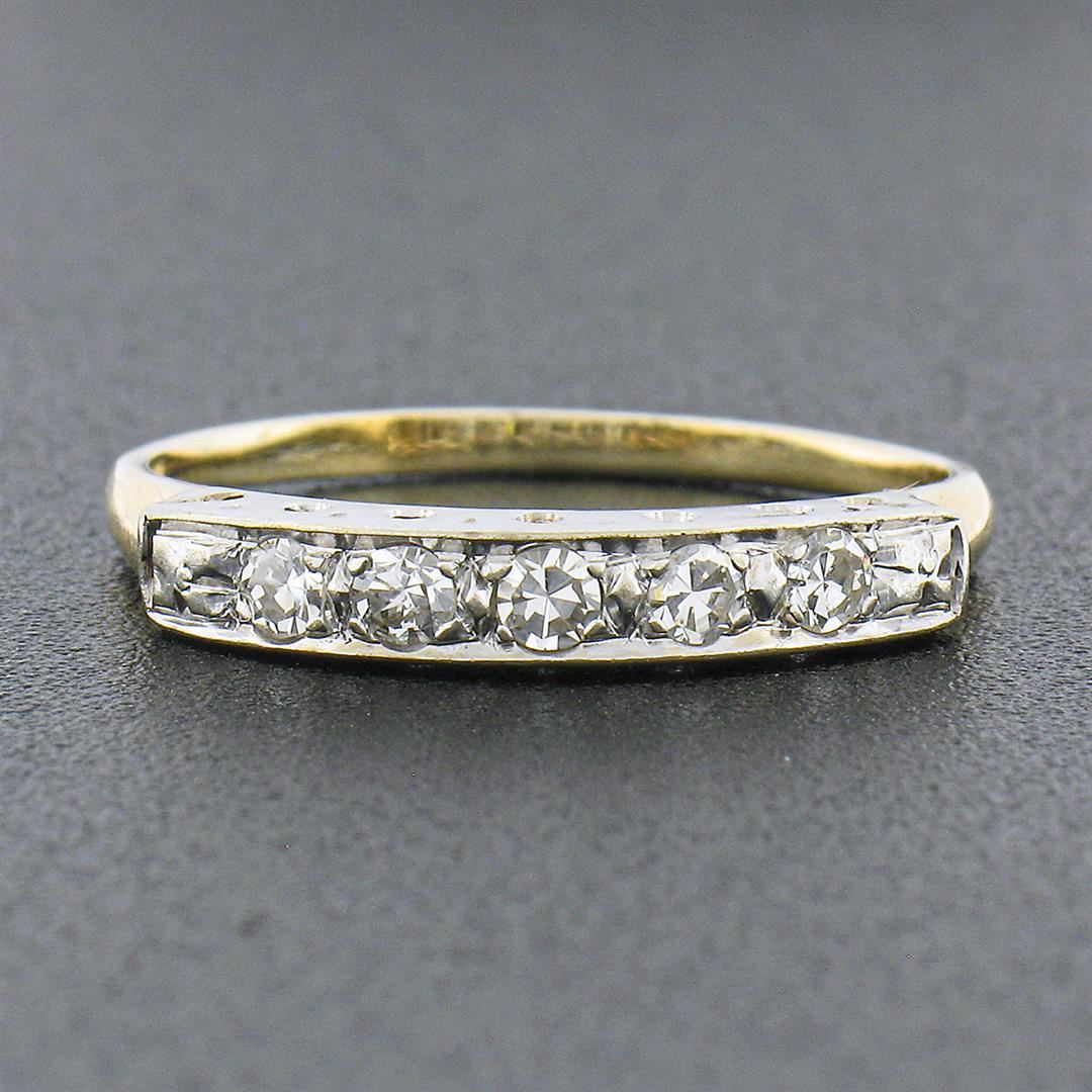 An antique solid 14k yellow and white gold band ring, with 5 old single cut natural diamonds (G/H - VS1/VS2 ; 0.30ctw). The ring is size 8.0, weighs a total of 1.97 grams, and measures 3.20mm wide.