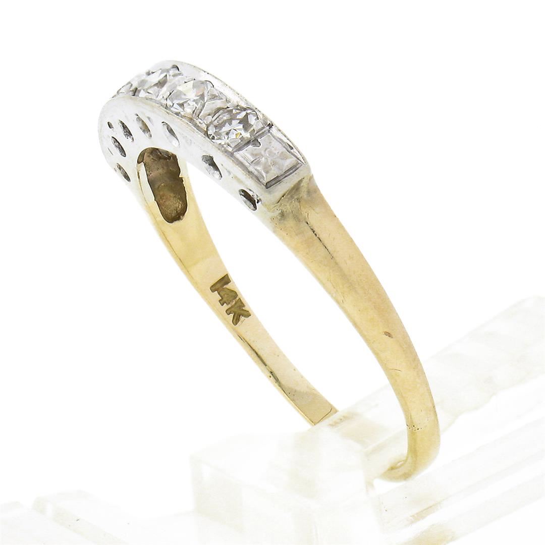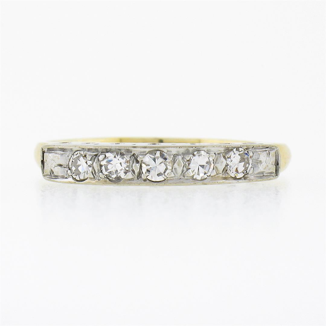 An antique solid 14k yellow and white gold band ring, with 5 old single cut natural diamonds (G/H - VS1/VS2 ; 0.30ctw). The ring is size 8.0, weighs a total of 1.97 grams, and measures 3.20mm wide.