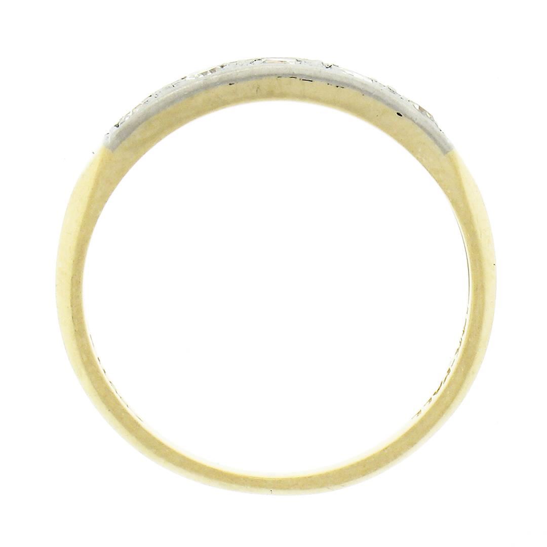 Antique 14k Yellow Gold w/ Palladium Top 0.20 ctw Pave Diamond Wedding Band Ring