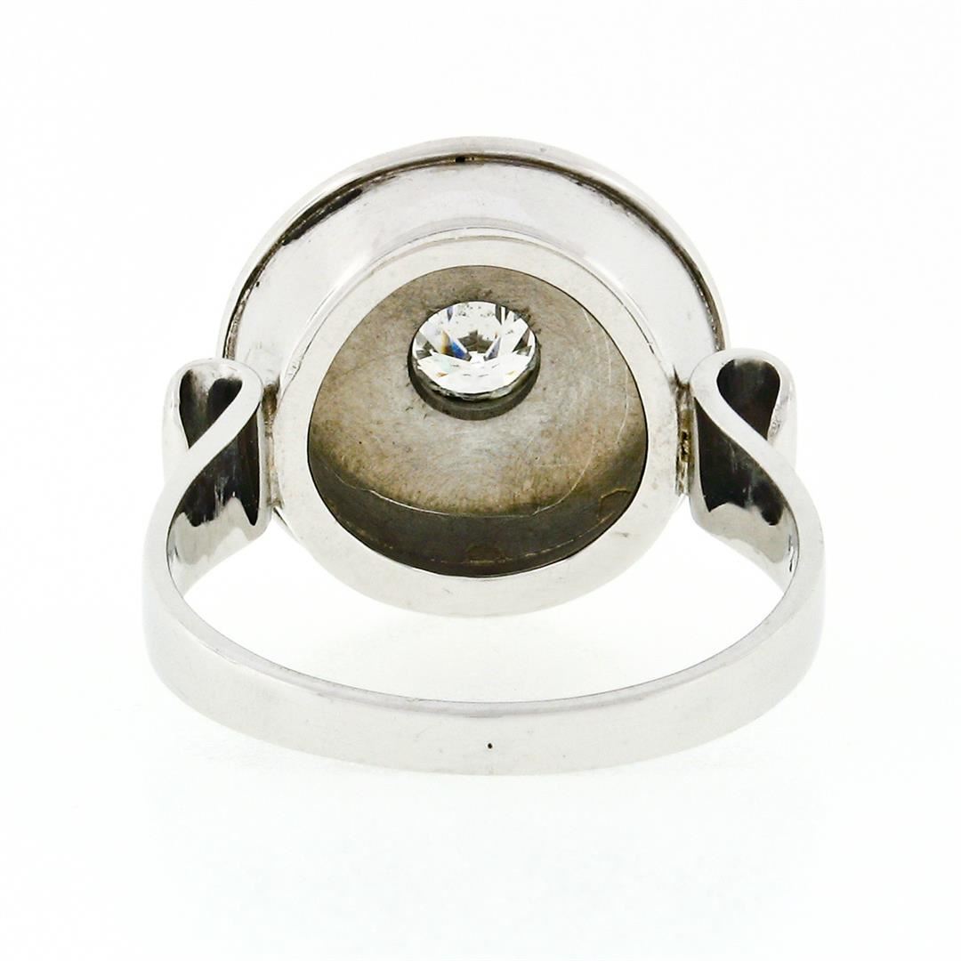 An antique solid 18k white gold platter ring, 1 old european cut natural diamond (G - VS2 ; 0.45ct). The ring is size 6, weighs a total of 6.67 grams, and measures 14.7mm in diameter.
