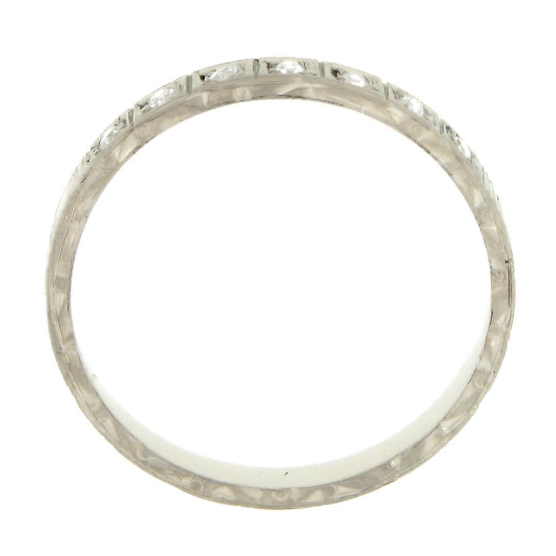 Antique 18K White Gold .08ctw Pave Diamond Engraved Scroll Work Stack Band Ring