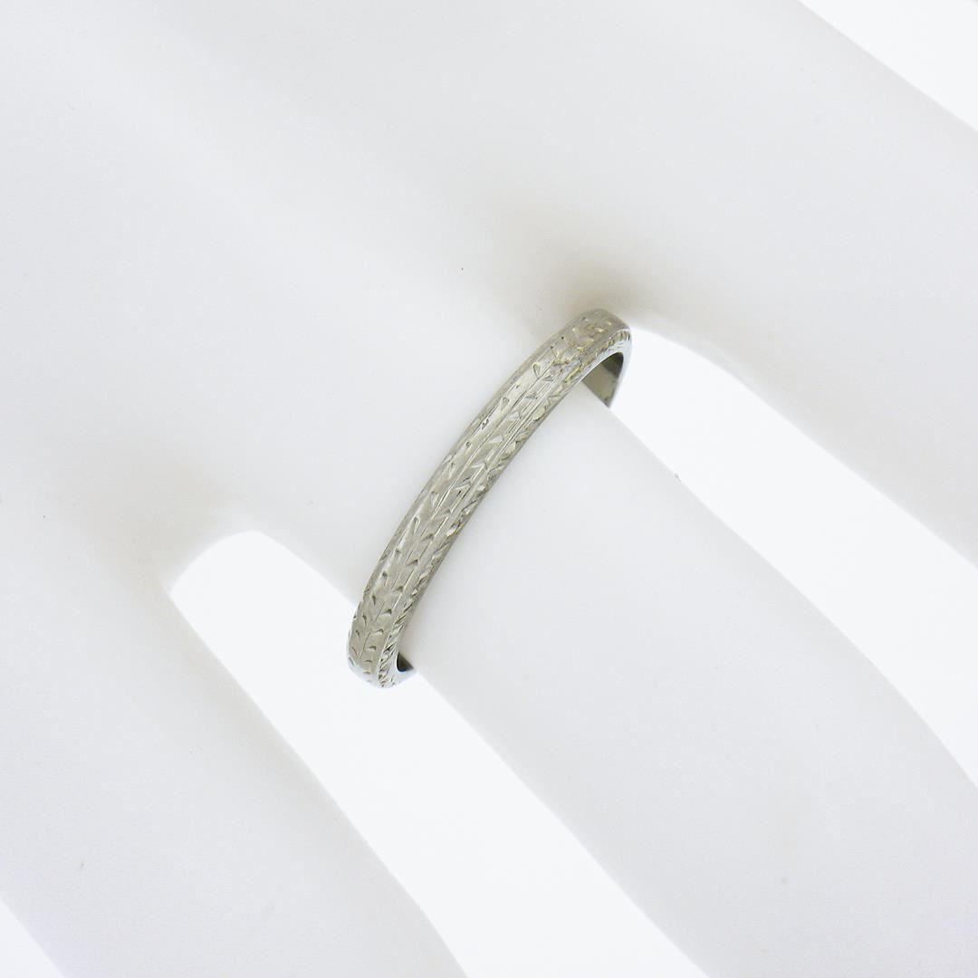 An antique solid 18k white gold band ring. The ring is size 5.75, weighs a total of 1.91 grams, and measures 2.3mm wide.