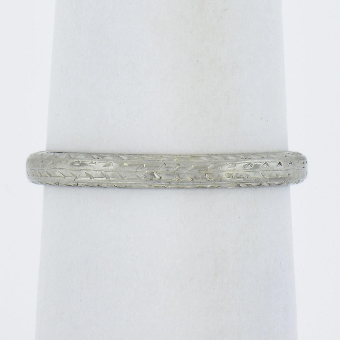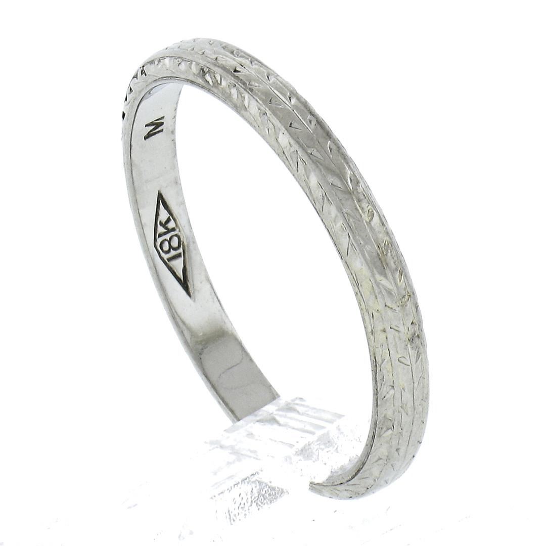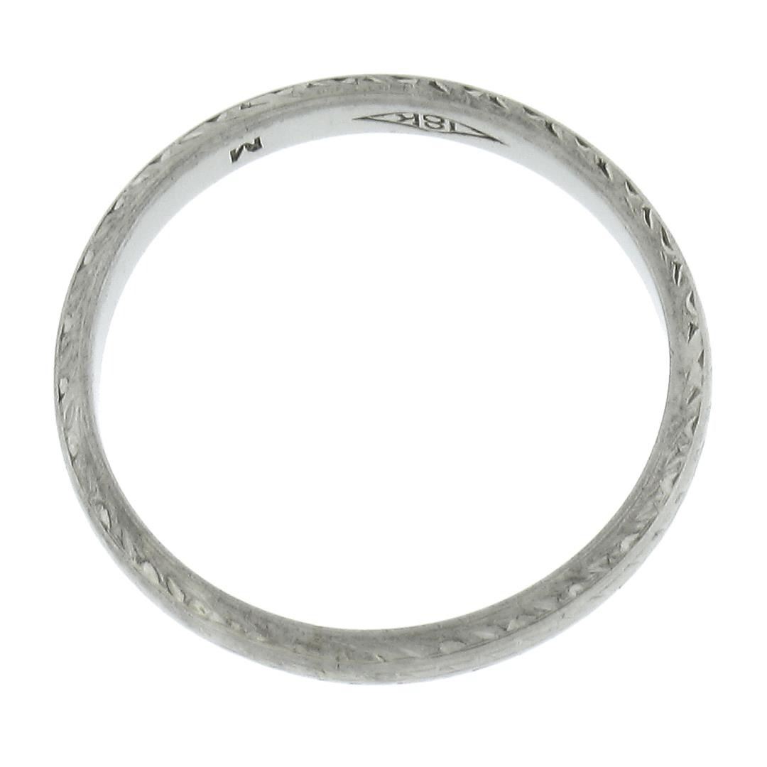 An antique solid 18k white gold band ring. The ring is size 5.75, weighs a total of 1.91 grams, and measures 2.3mm wide.