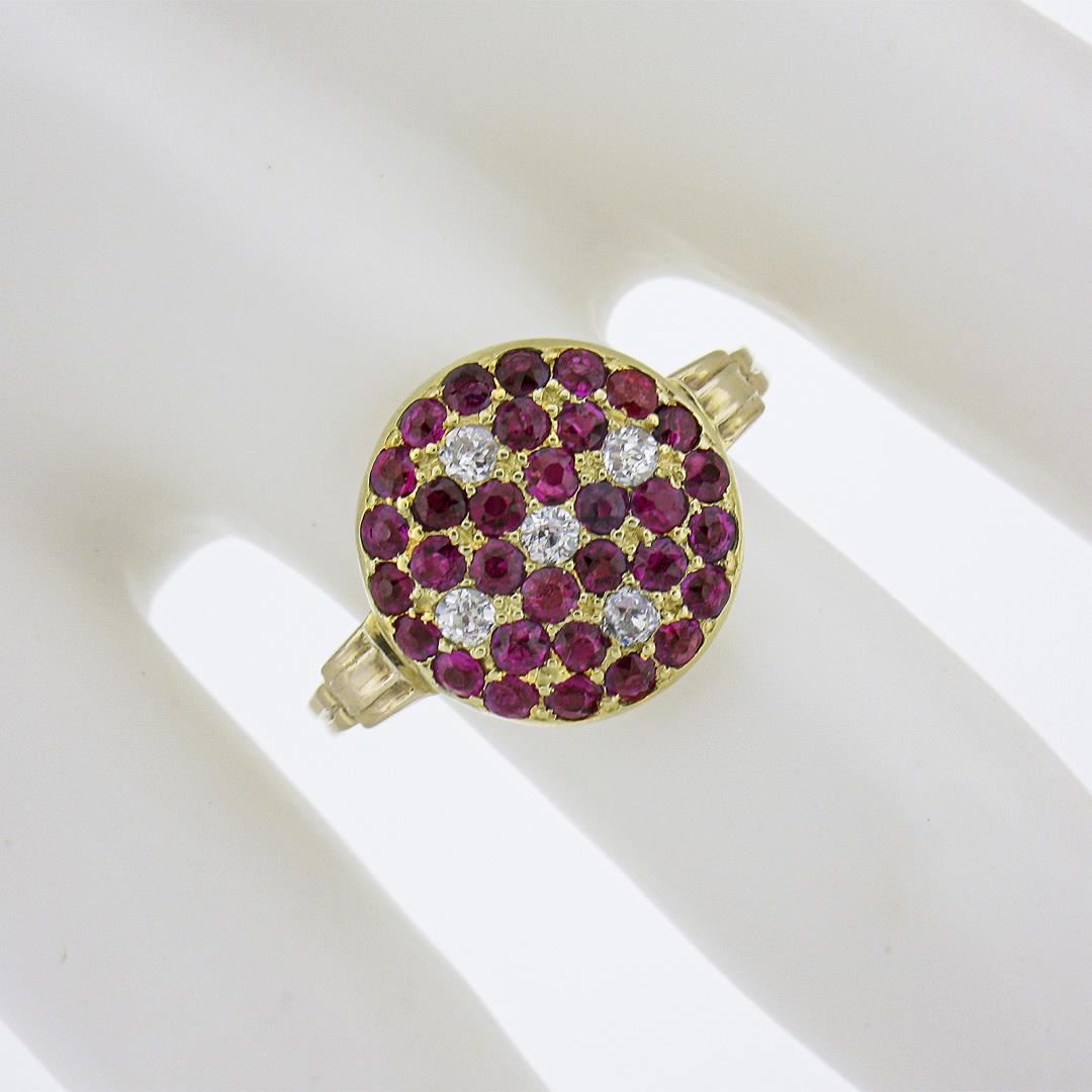 Antique 18K Yellow Gold 1.06ctw Old Cut Pave Set Ruby & Diamond Platter Ring