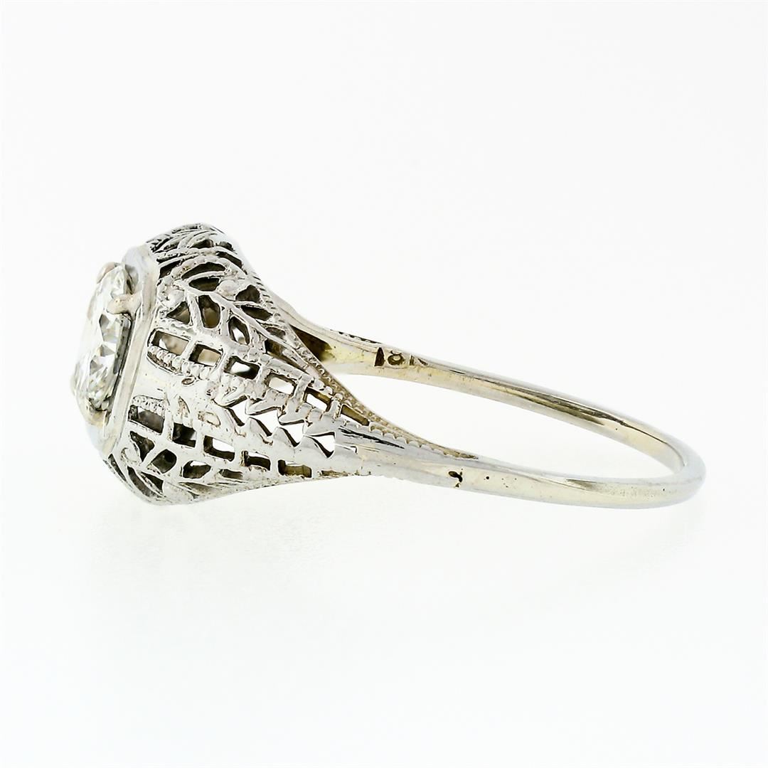 An art deco solid 18k white gold filigree engagement ring, with 1 GIA Certified old transitional cut natural diamond (I - VS2 ; 0.71ct). The ring is size 7.5, weighs a total of 2.23 grams, and measures 10.5mm wide. Comes with all original relevant certifications.