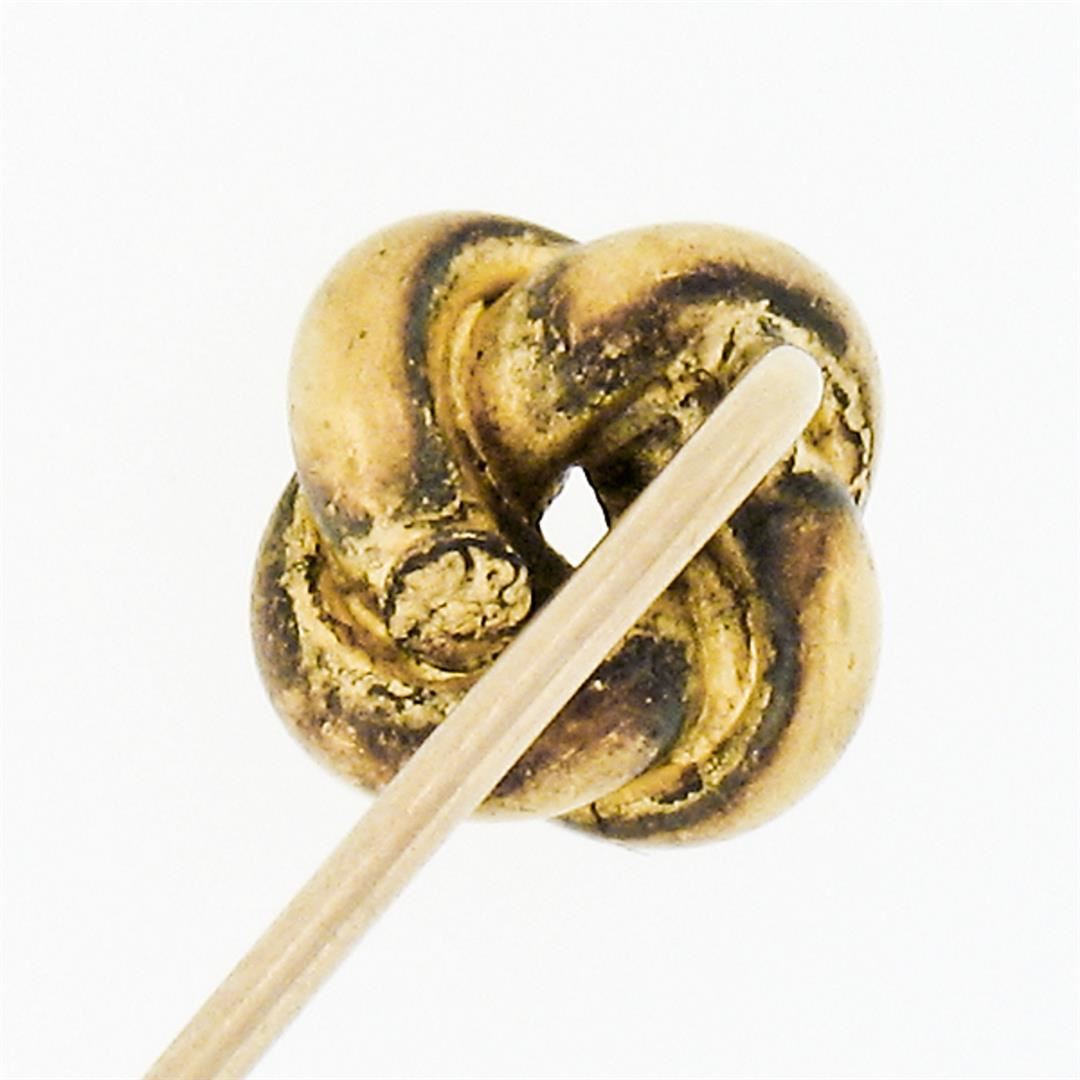 An antique solid 18k yellow gold knot stick pin. Measures 64.30x8.85mm and weighs a total of 1.23 grams.