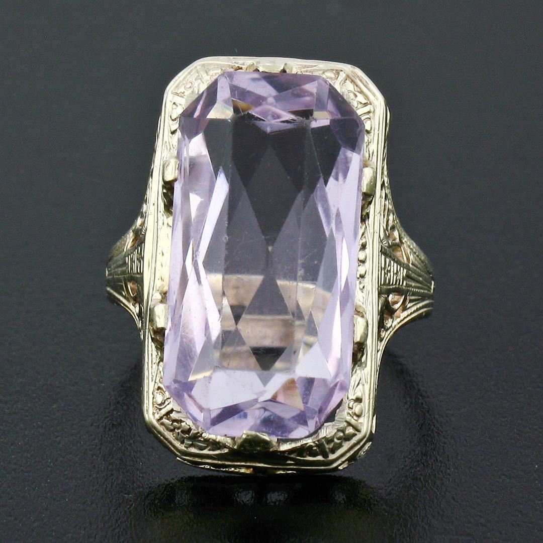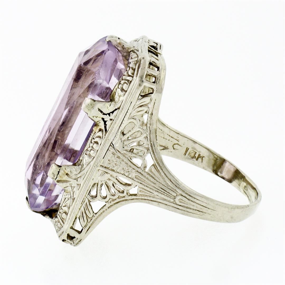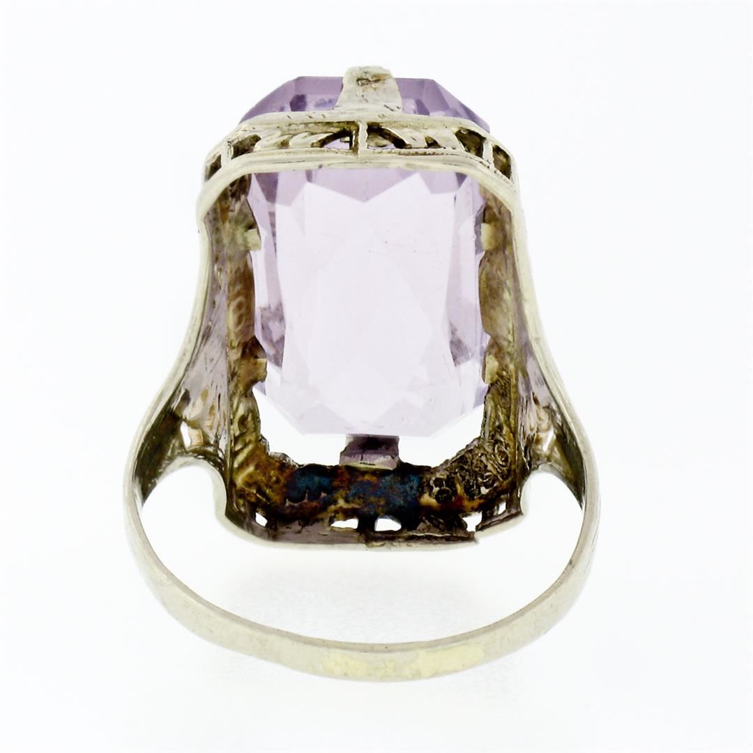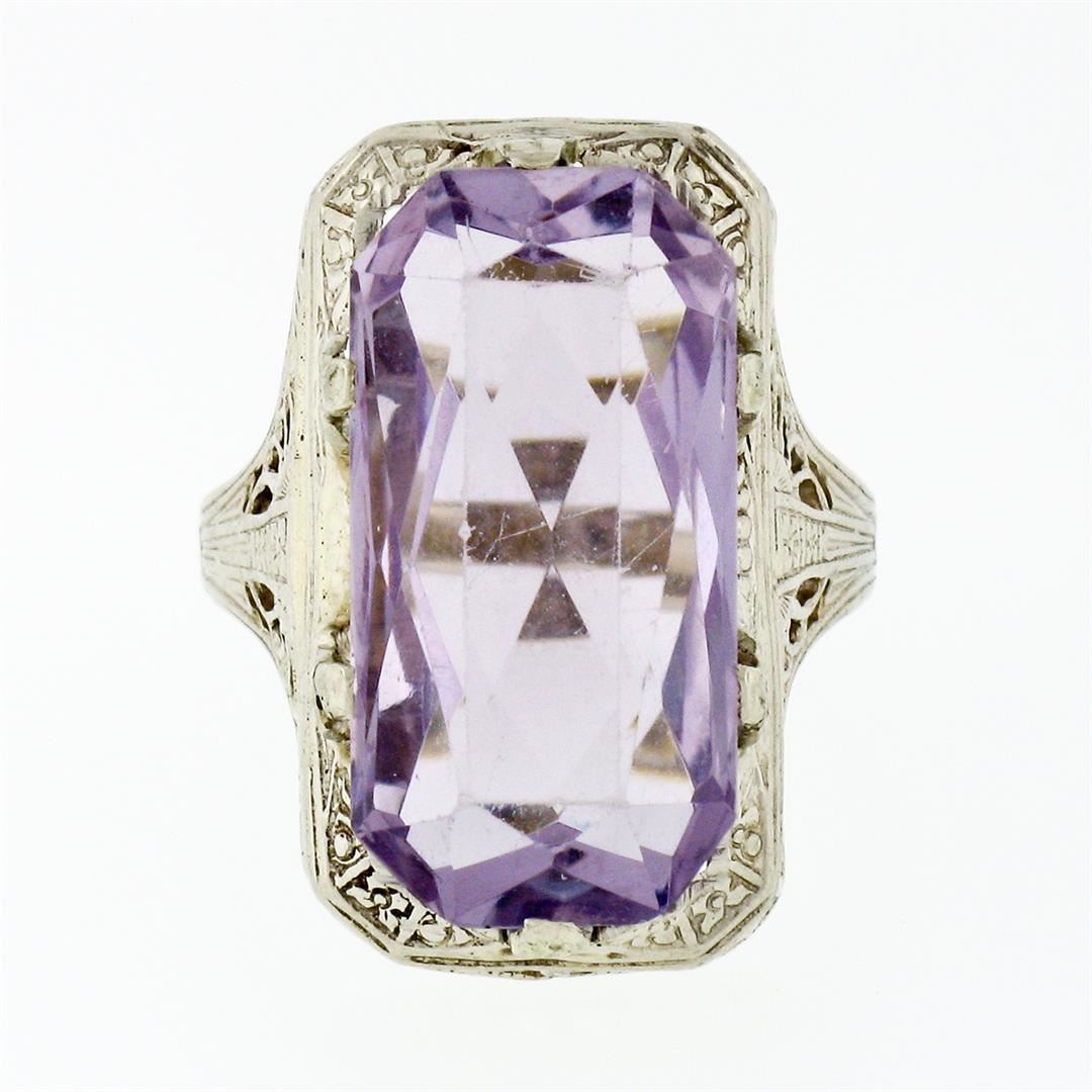 Antique Art Deco 14k White Gold Faceted Purple Stone Etched Filigree Dinner Ring