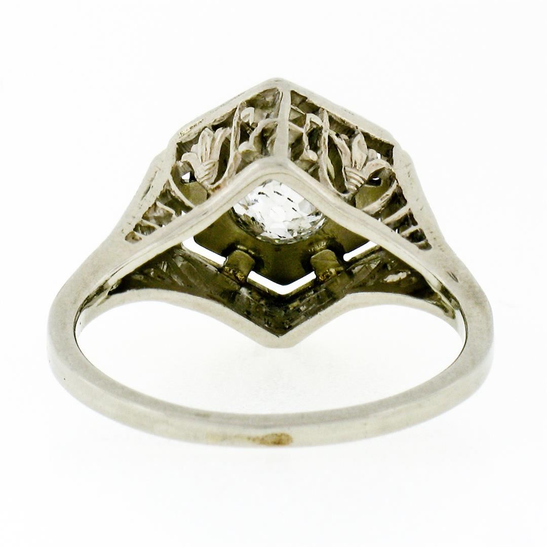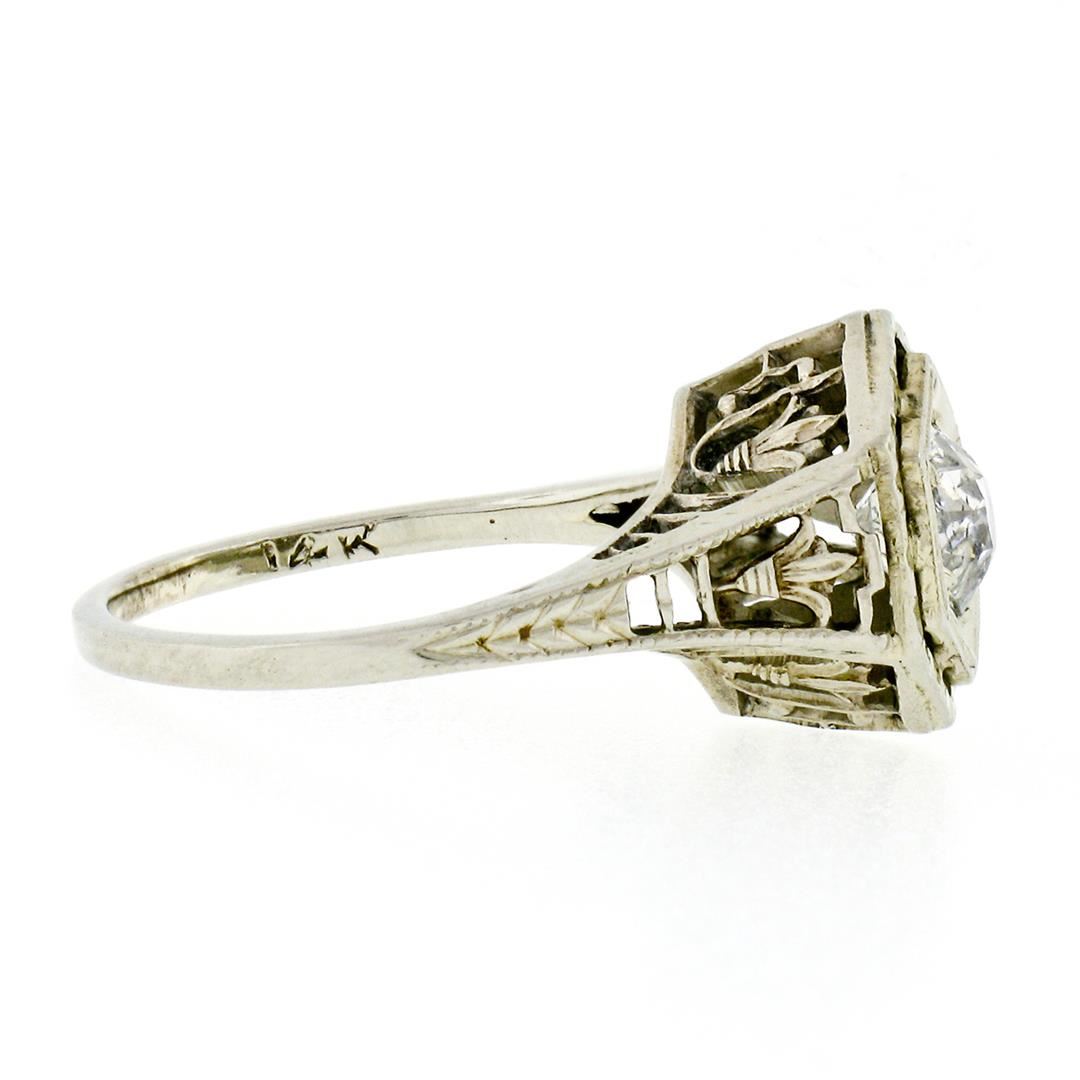 Antique Art Deco 14k White Gold Filigree 0.54 ctw European Diamond Solitaire Rin