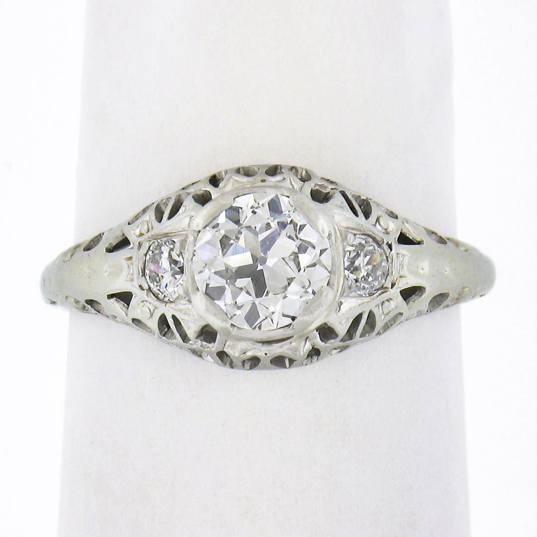 Antique Art Deco 18K Gold 0.69ctw GIA European Diamond Filigree Engagement Ring