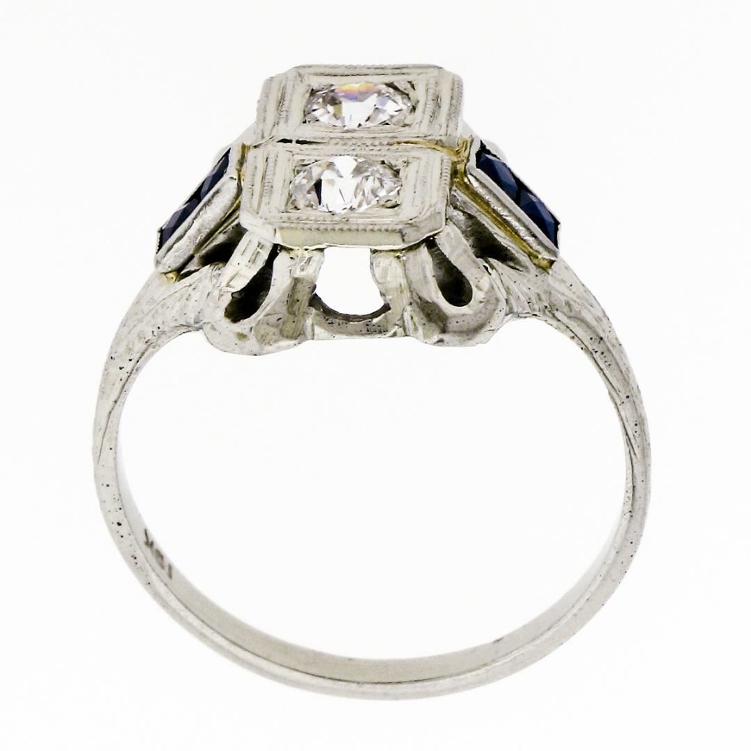 Antique Art Deco 18K White Gold .46ctw Diamond Sapphire Open Etched Dinner Ring