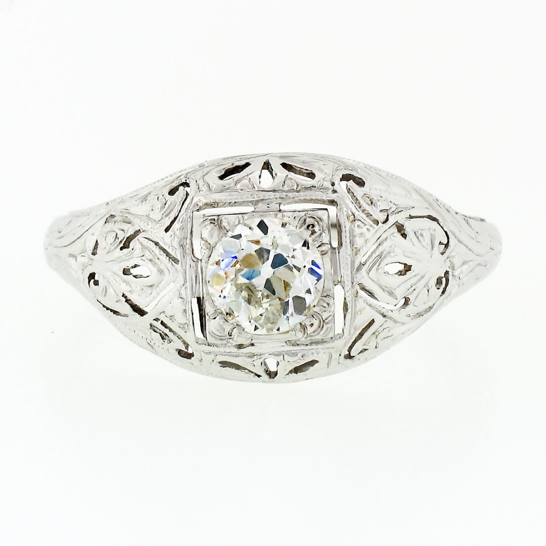 Antique Art Deco 18k Gold Dome Filigree Engraved 0.52 ctw European Diamond Ring