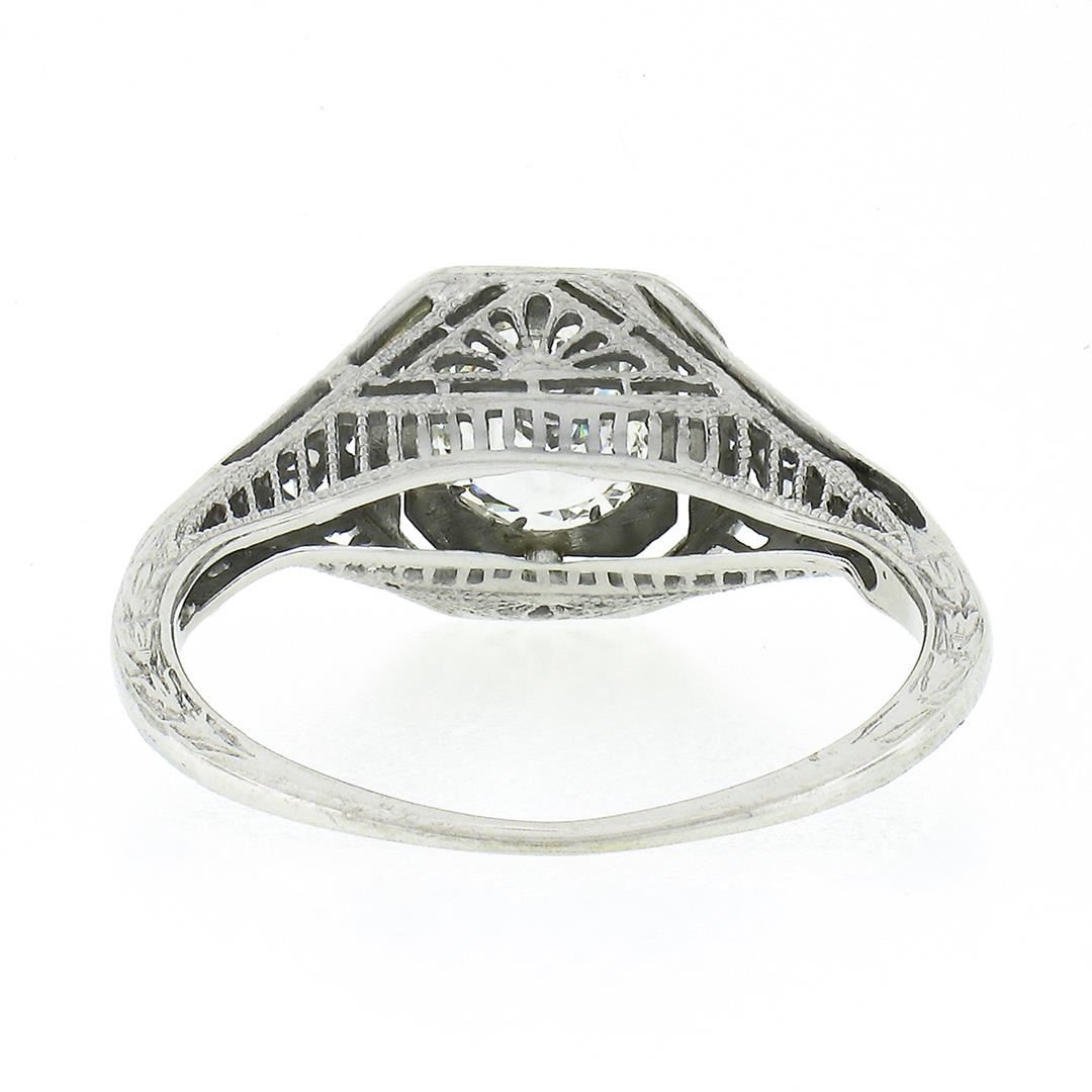 An antique solid 18k white gold ring, with 1 old european cut natural diamond (H/I - SI1 ; 0.80ct). The ring is size 6.0, weighs a total of 2.11 grams, and measures 8.80mm wide.