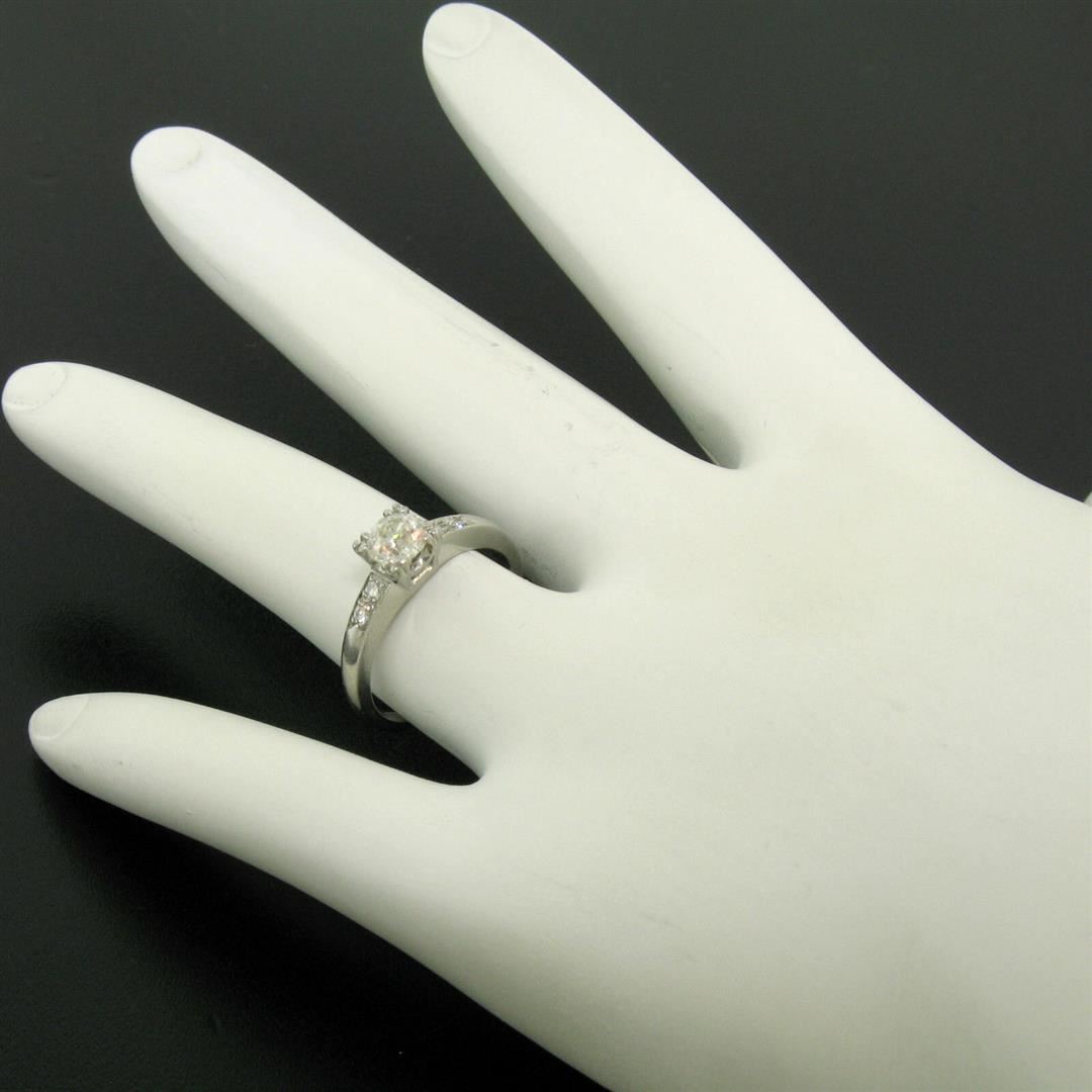 Antique Art Deco .900 Platinum 0.51ctw Old European Cut Diamond Engagement Ring. Please see photos and description for all available information. An antique art deco solid platinum solitaire engagement ring, featuring 1 round european cut natural diamond (I- VS2; 0.45ct), accented with 4 round single cut natural diamonds (I- VS2; 0.06ctw). The ring is size 4.5, weighs a total of 3.8 grams, and measures 5.10mm wide.