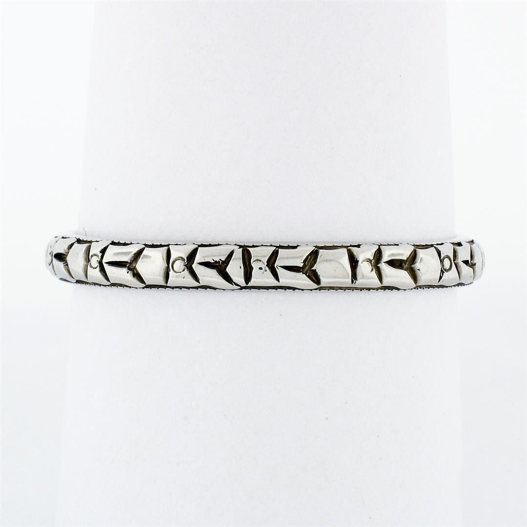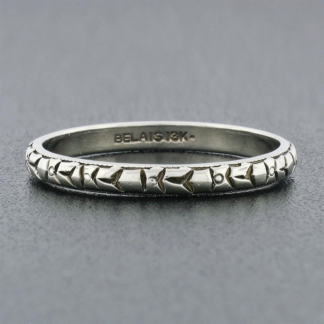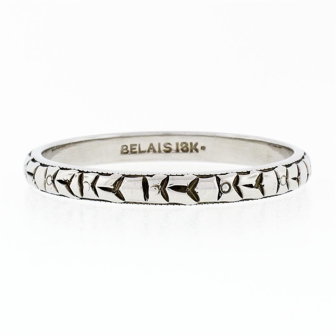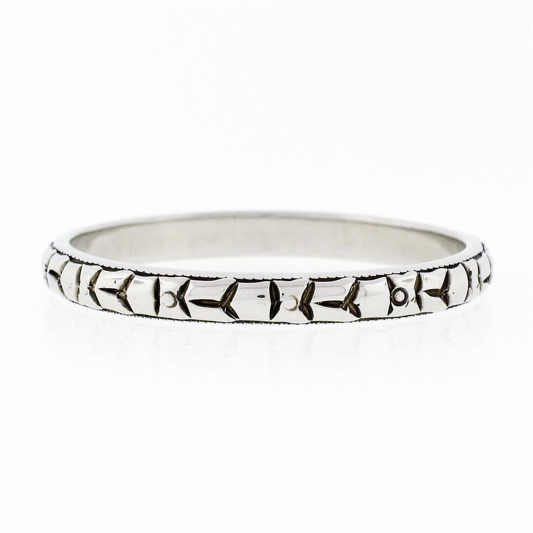 A stackable art deco period solid 18k white gold milgrain engraved eternity band ring. The ring is size 10.00, weighs a total of 2.81 grams, and measures 2.55mm wide.
