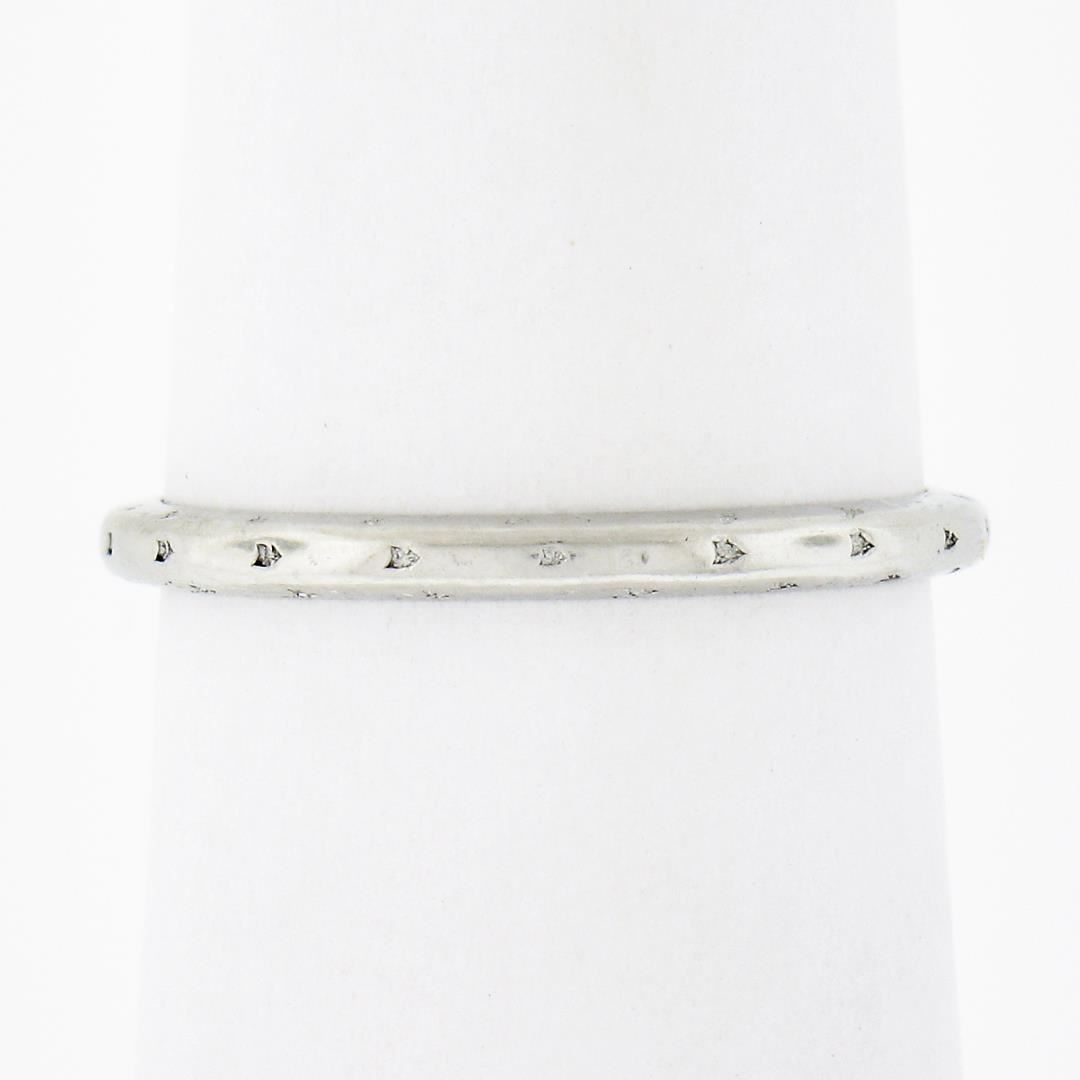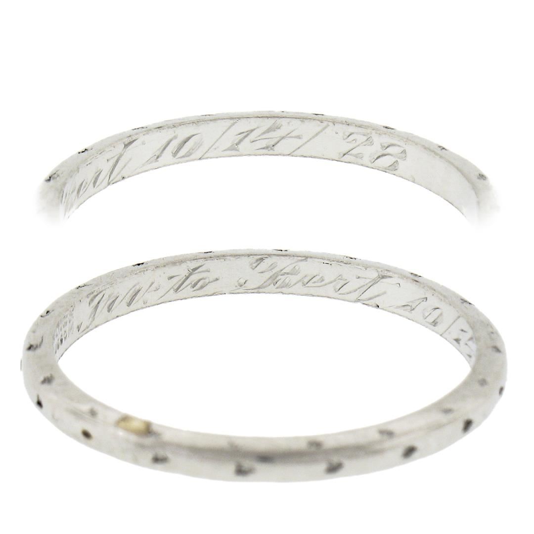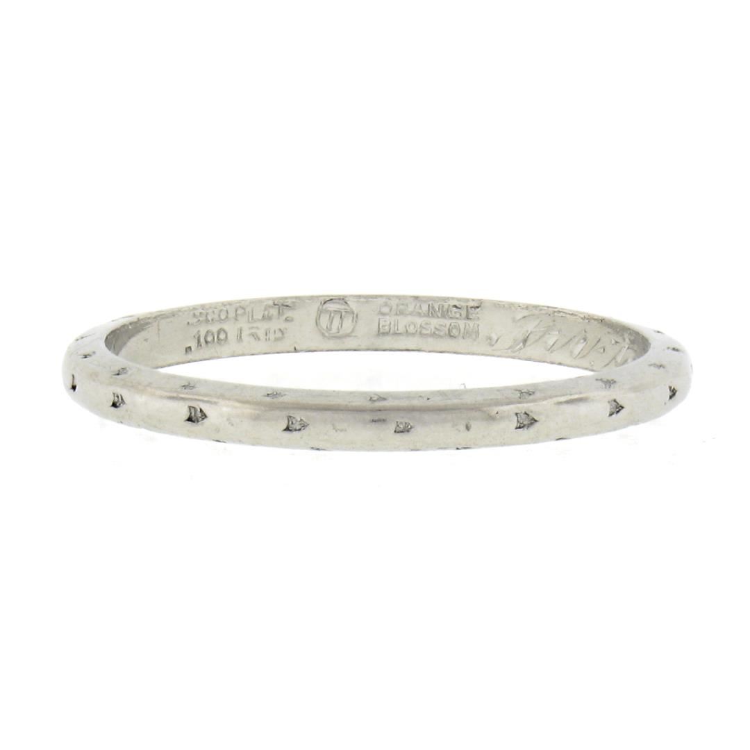 An antique solid platinum band ring. The ring is size 5.5, weighs a total of 2.15 grams, and measures 1.8mm wide.