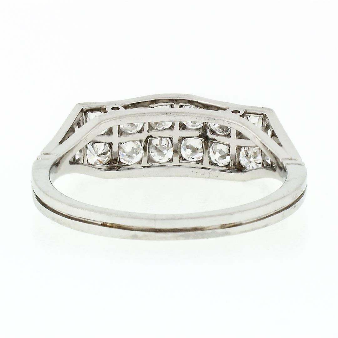 Antique Art Deco Platinum 0.64 ctw Transitional Cut Diamond Two Row Wave Band Ri