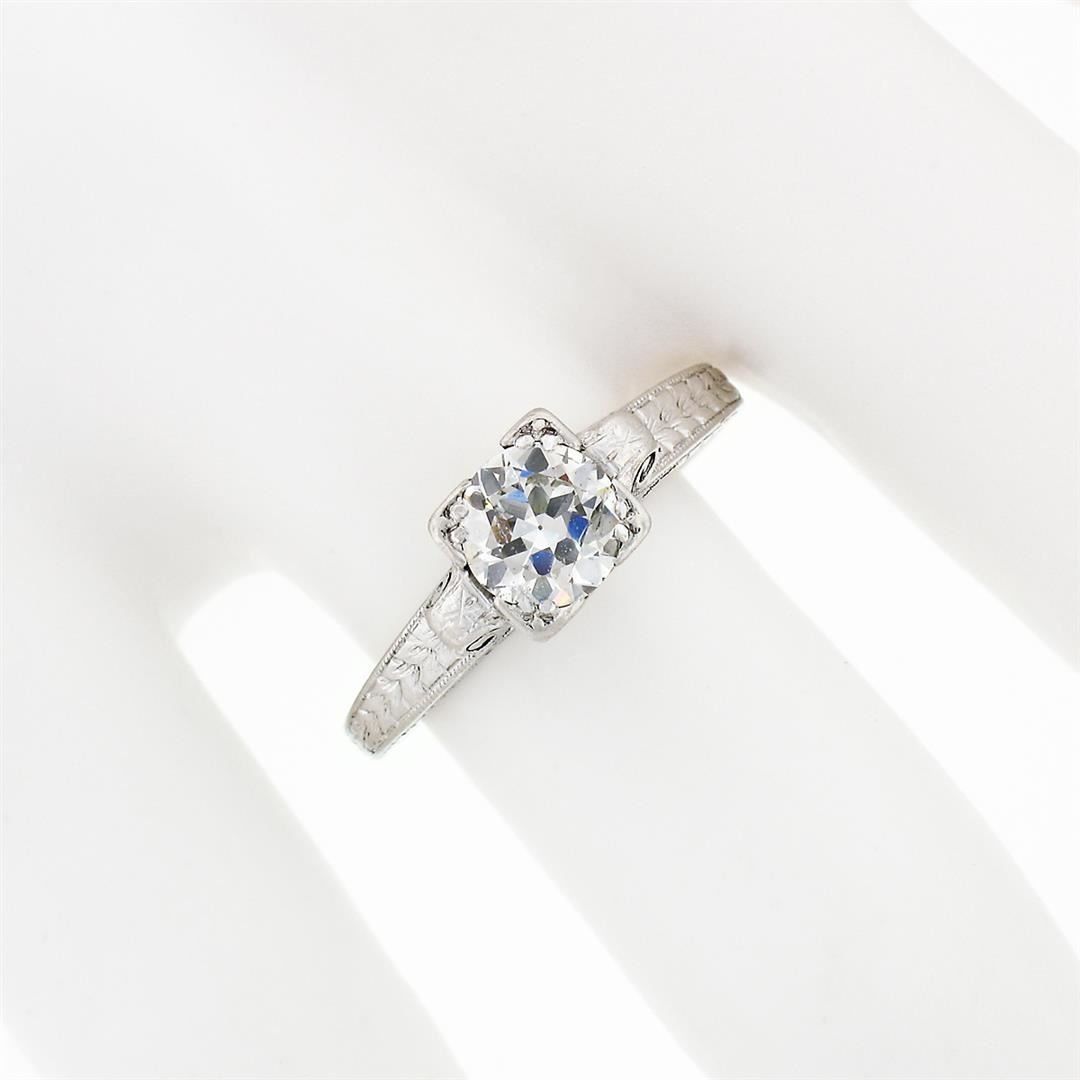 An antique solid platinum engagement ring, with 1 old european cut natural diamond (J - SI2/I1 ; 0.80ctw). The ring is size 6.5, weighs a total of 3.18 grams, and measures 6.25mm wide.